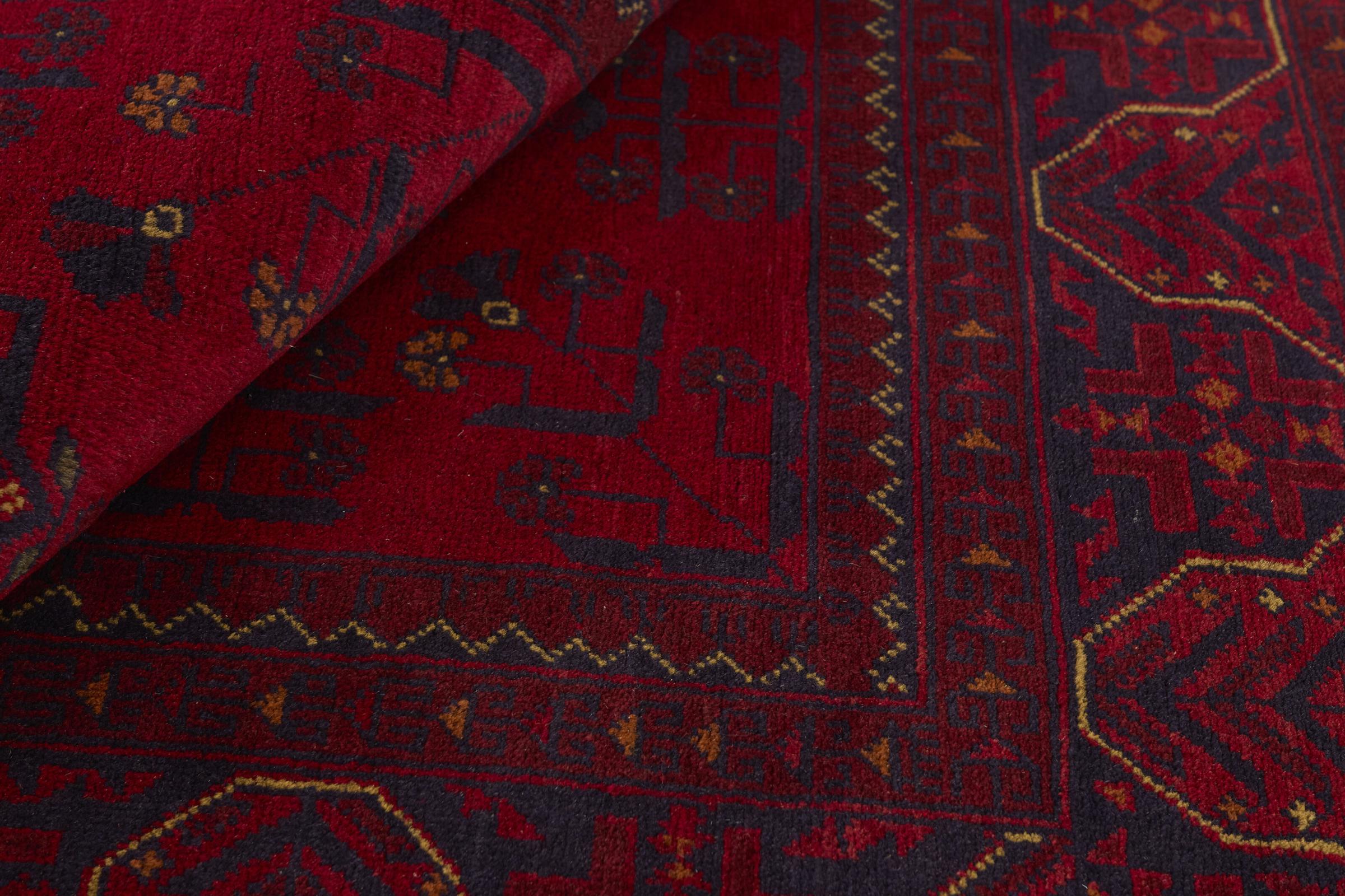 This rug is called Khal Mohammadi and probably belongs to the most beautiful rugs from Afghanistan. It has warm shades of red. This rug has been knotted by hand from soft sheep wool. It brings cosiness and a great style to your home.