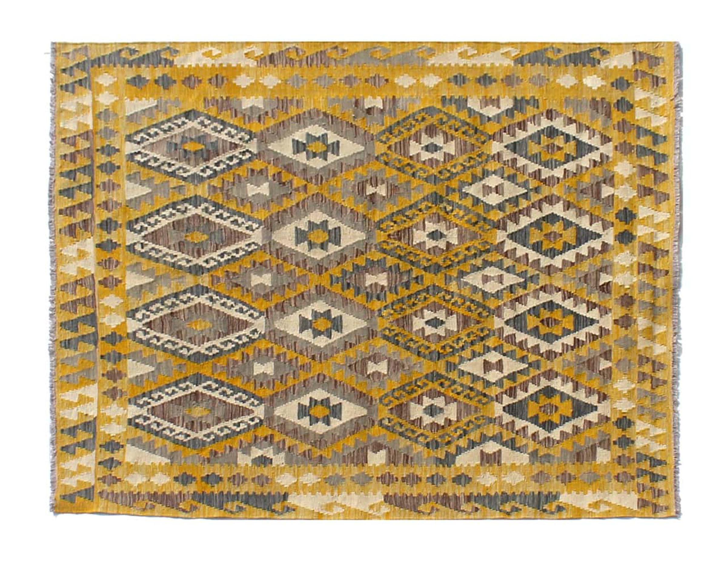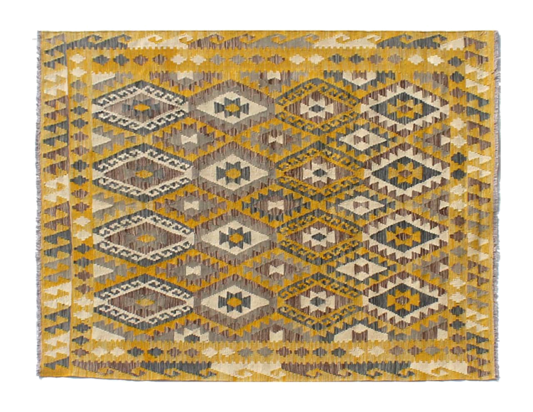 These Kilim rugs have a significant difference from hand-knotted rugs—they are handwoven. As a result, they do not have a high pile of wool and are often flatter and rougher than knotted wool rugs. Their construction is less intricate, making them generally much more affordable. Additionally, Kilim rugs are much lighter and can be laid out on either side. Handwoven Kilims originally come from what was once Persia and are now also widely produced in Afghanistan. They typically feature simple, straight-line patterns, which are characteristic of their weaving technique.