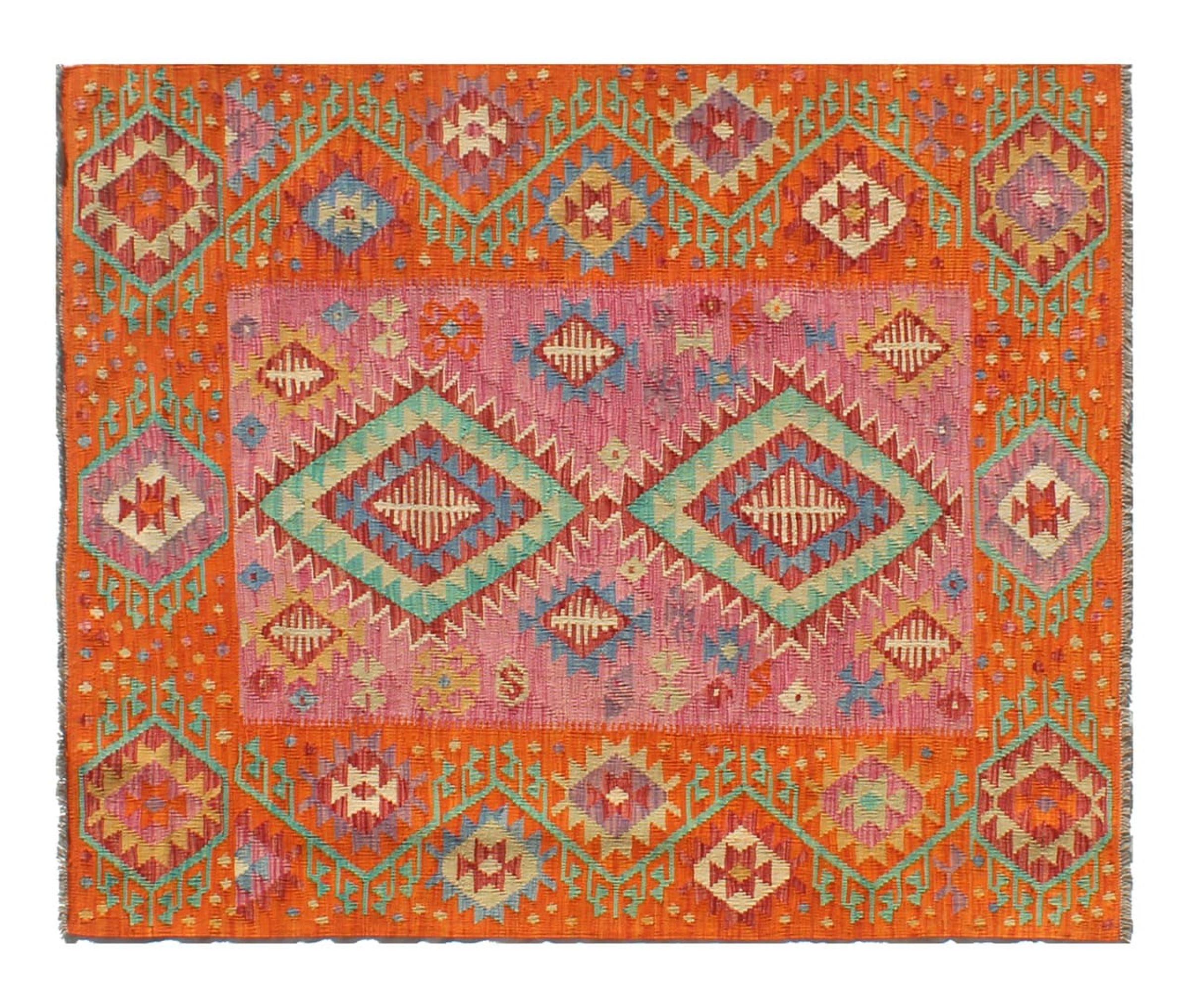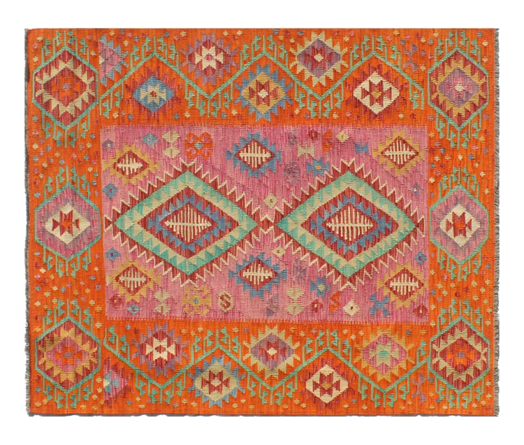 These Kilim rugs have a significant difference from hand-knotted rugs—they are handwoven. As a result, they do not have a high pile of wool and are often flatter and rougher than knotted wool rugs. Their construction is less intricate, making them generally much more affordable. Additionally, Kilim rugs are much lighter and can be laid out on either side. Handwoven Kilims originally come from what was once Persia and are now also widely produced in Afghanistan. They typically feature simple, straight-line patterns, which are characteristic of their weaving technique.