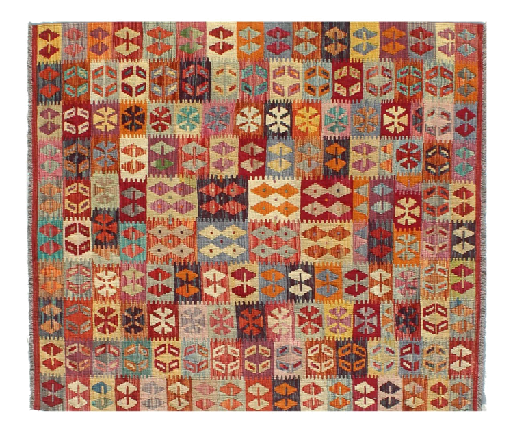 Rug ID: 304478009480645 Size: 6'9"x5'0" ft Thickness: ap. 0.12 in Manufacturing: Woven by hand Pile: Handspun wool Warp: Sheep wool Origin: Afghanistan Age: New Weight: ap. 11 lb In stock: Unique - Only 1 in stock