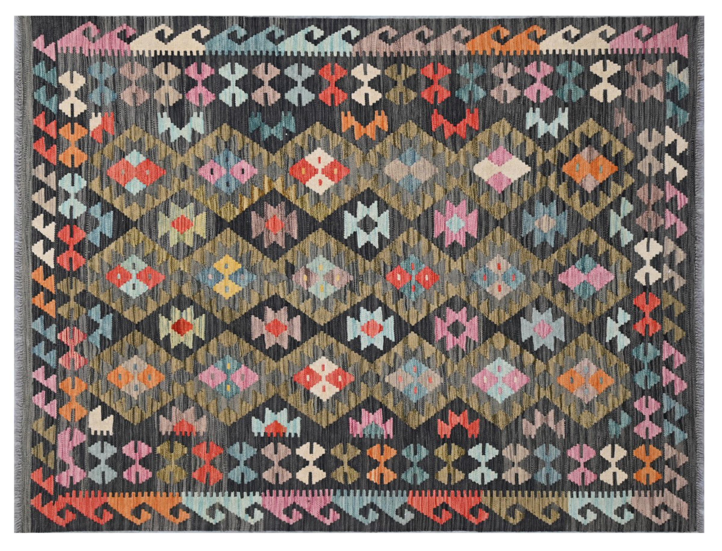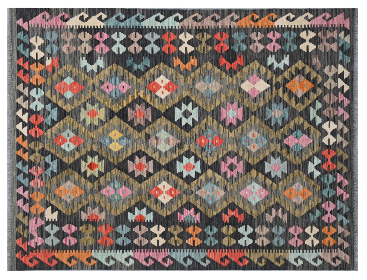 These Kilim rugs have a significant difference from hand-knotted rugs—they are handwoven. As a result, they do not have a high pile of wool and are often flatter and rougher than knotted wool rugs. Their construction is less intricate, making them generally much more affordable. Additionally, Kilim rugs are much lighter and can be laid out on either side. Handwoven Kilims originally come from what was once Persia and are now also widely produced in Afghanistan. They typically feature simple, straight-line patterns, which are characteristic of their weaving technique.