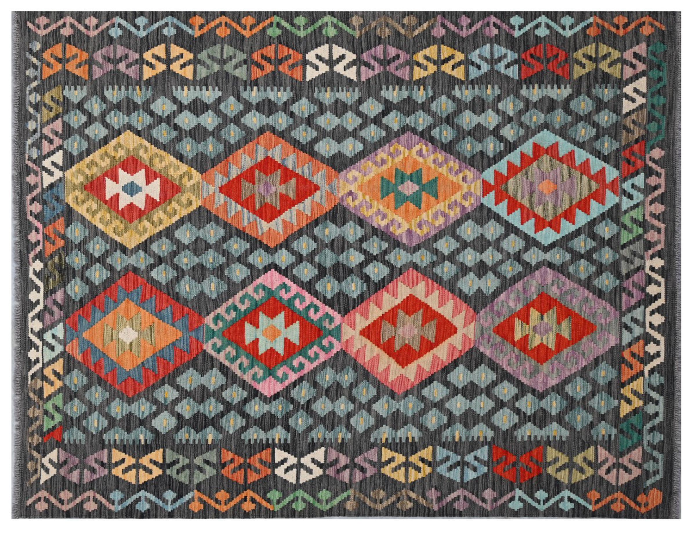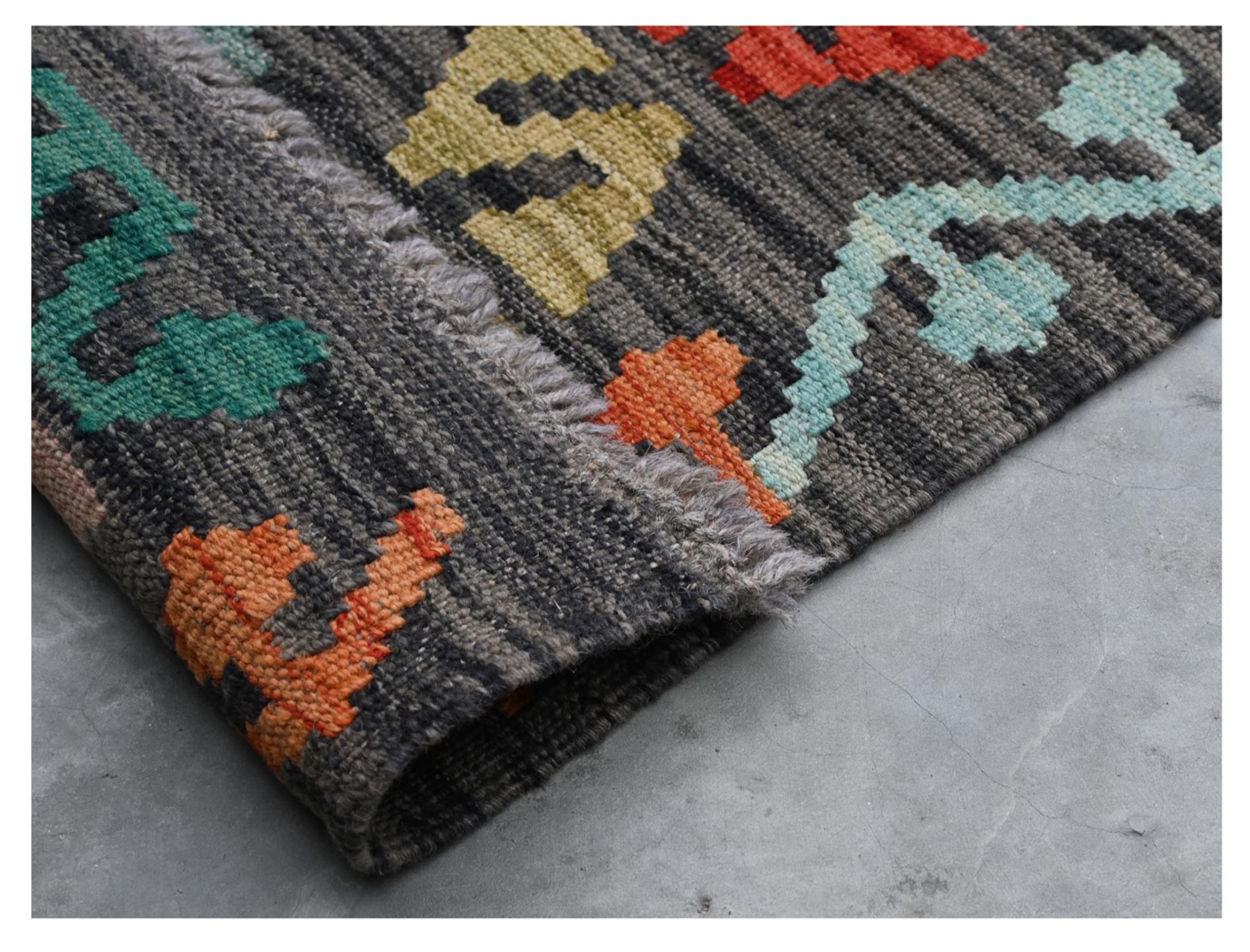 This Kilim Afghan rug has beautiful colors. It is handmade from fine wool. These patterns are traditional design elements that have already been used centuries ago. This particular kilim has been woven by hand in Afghanistan, a country with a long history in weaving and knotting rugs. The rug is robust and can be laid out on both sides.