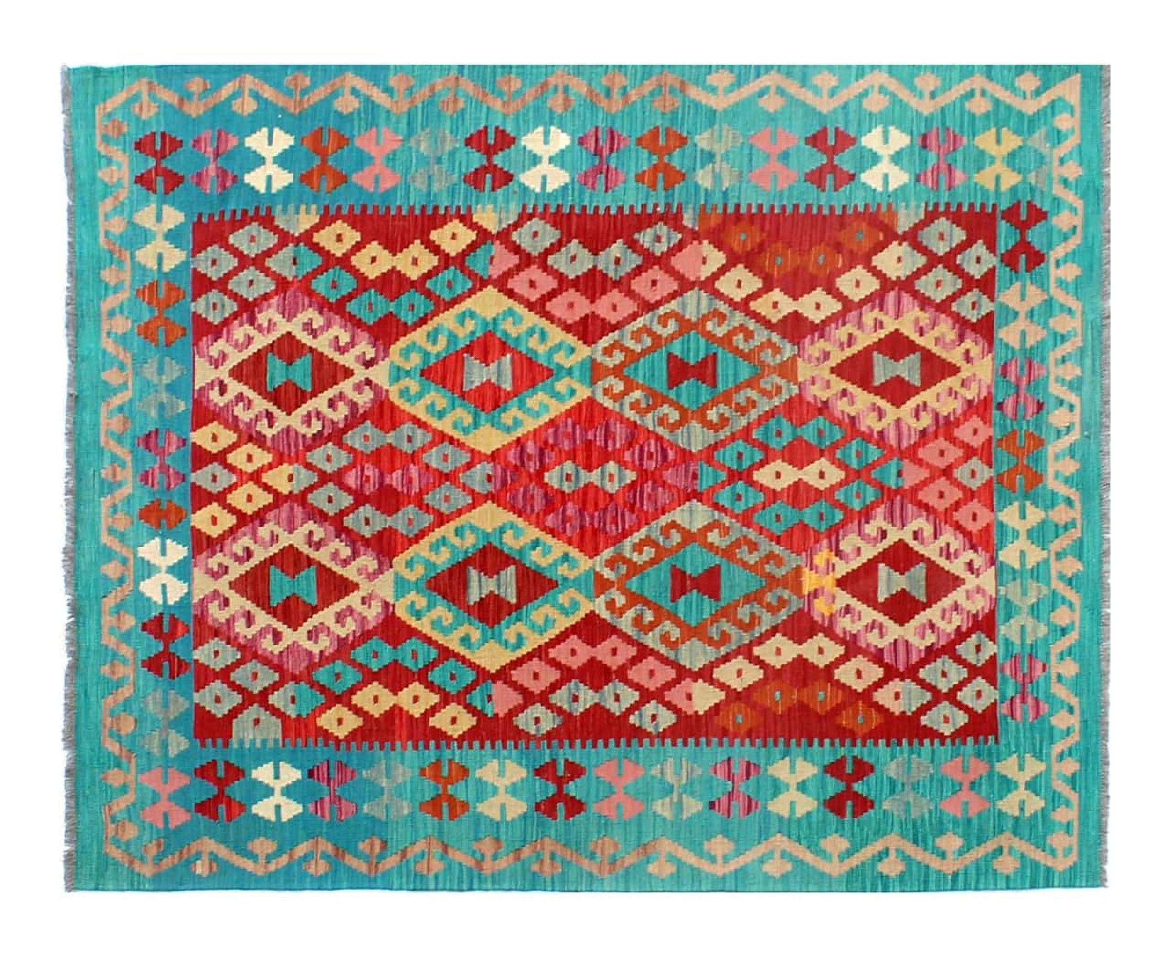 These Kilim rugs have a significant difference from hand-knotted rugs—they are handwoven. As a result, they do not have a high pile of wool and are often flatter and rougher than knotted wool rugs. Their construction is less intricate, making them generally much more affordable. Additionally, Kilim rugs are much lighter and can be laid out on either side. Handwoven Kilims originally come from what was once Persia and are now also widely produced in Afghanistan. They typically feature simple, straight-line patterns, which are characteristic of their weaving technique.