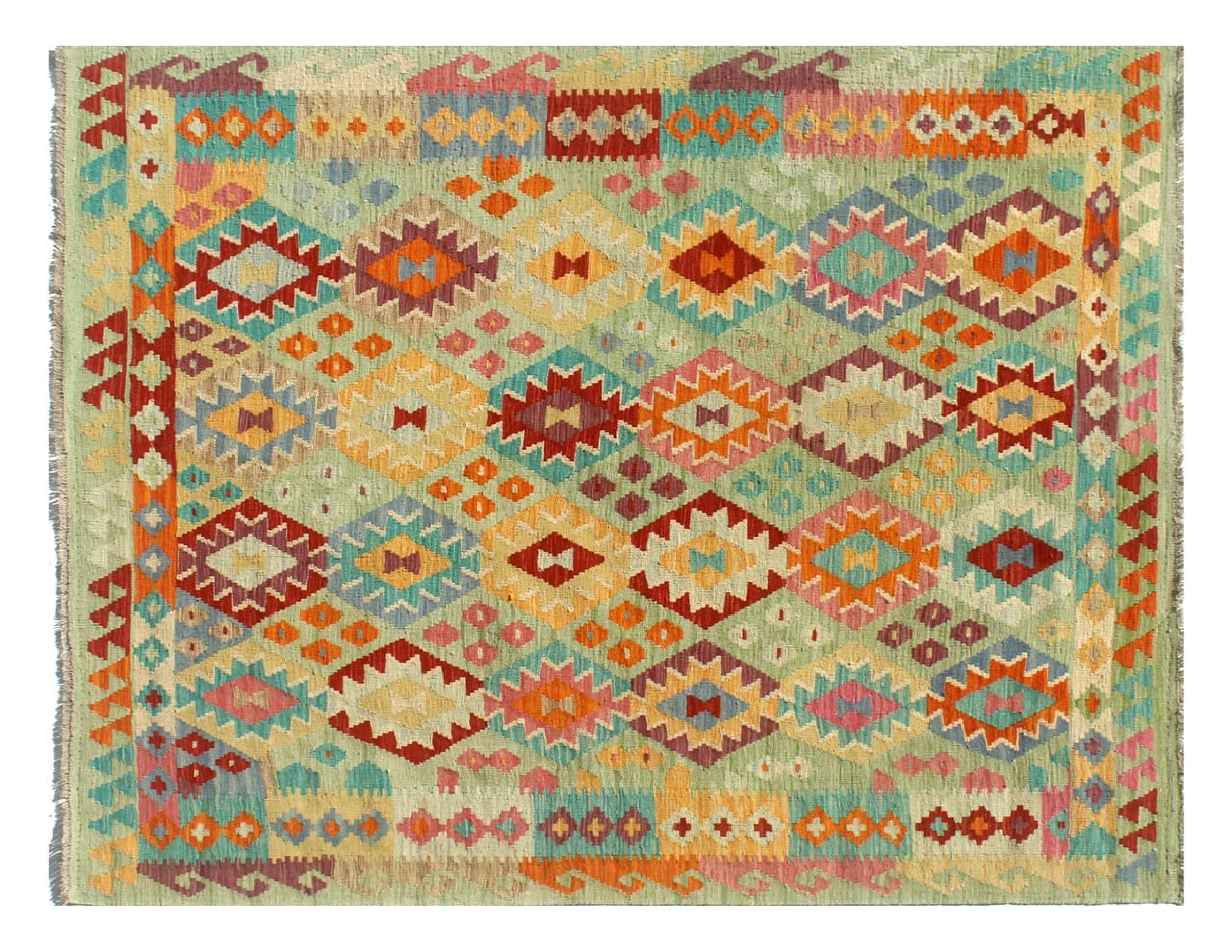 This Kilim Afghan rug has beautiful colors. It is handmade from fine wool. These patterns are traditional design elements that have already been used centuries ago. This particular kilim has been woven by hand in Afghanistan, a country with a long history in weaving and knotting rugs. The rug is robust and can be laid out on both sides.