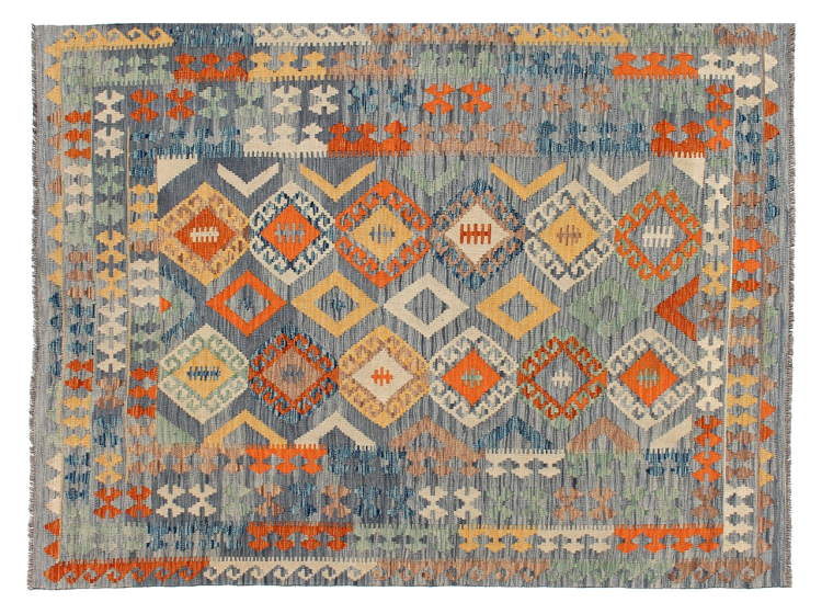 These Kilim rugs have a significant difference from hand-knotted rugs—they are handwoven. As a result, they do not have a high pile of wool and are often flatter and rougher than knotted wool rugs. Their construction is less intricate, making them generally much more affordable. Additionally, Kilim rugs are much lighter and can be laid out on either side. Handwoven Kilims originally come from what was once Persia and are now also widely produced in Afghanistan. They typically feature simple, straight-line patterns, which are characteristic of their weaving technique.