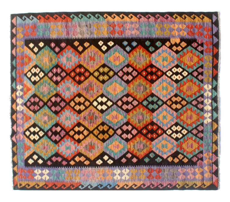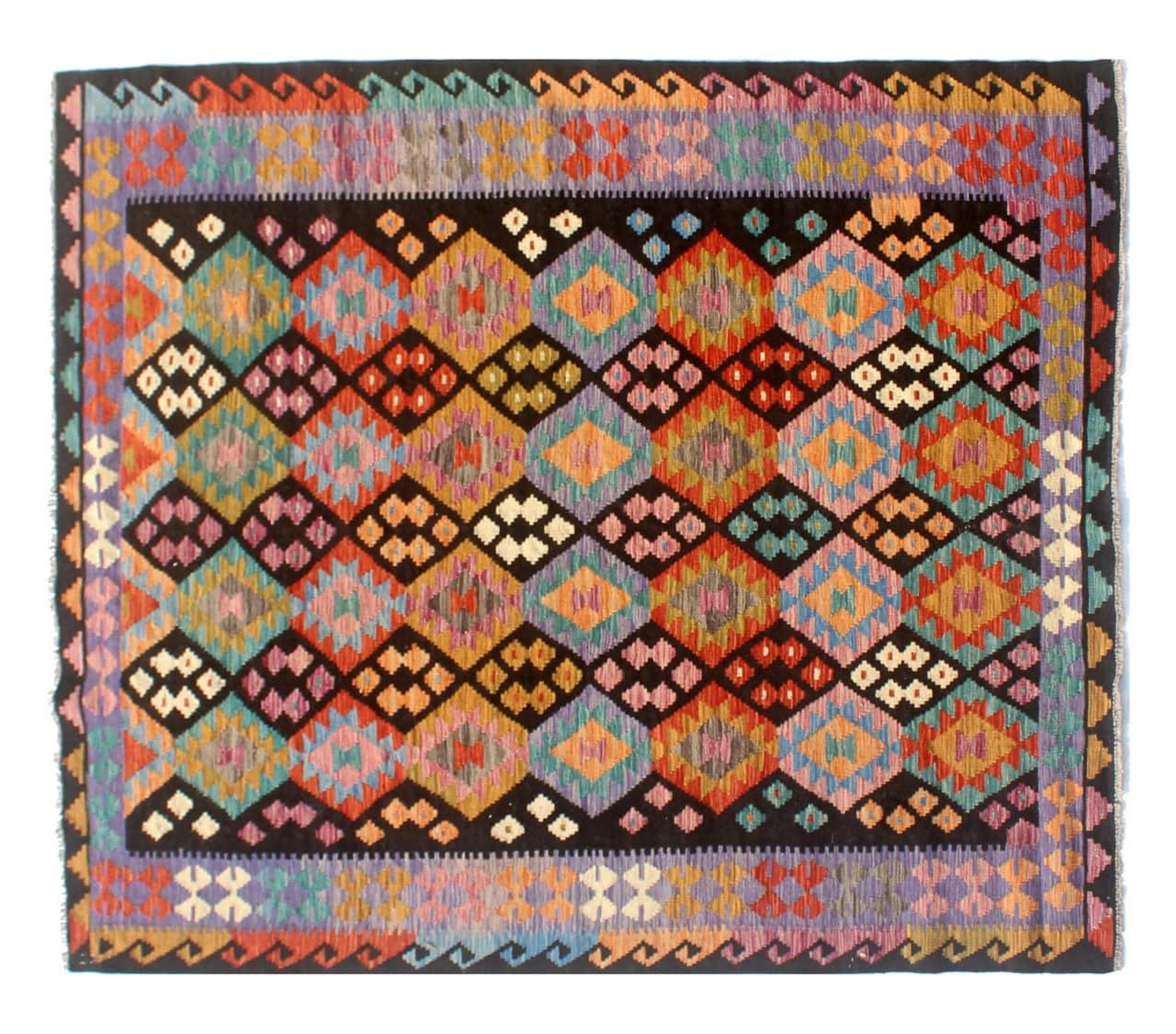 These Kilim rugs have a significant difference from hand-knotted rugs—they are handwoven. As a result, they do not have a high pile of wool and are often flatter and rougher than knotted wool rugs. Their construction is less intricate, making them generally much more affordable. Additionally, Kilim rugs are much lighter and can be laid out on either side. Handwoven Kilims originally come from what was once Persia and are now also widely produced in Afghanistan. They typically feature simple, straight-line patterns, which are characteristic of their weaving technique.