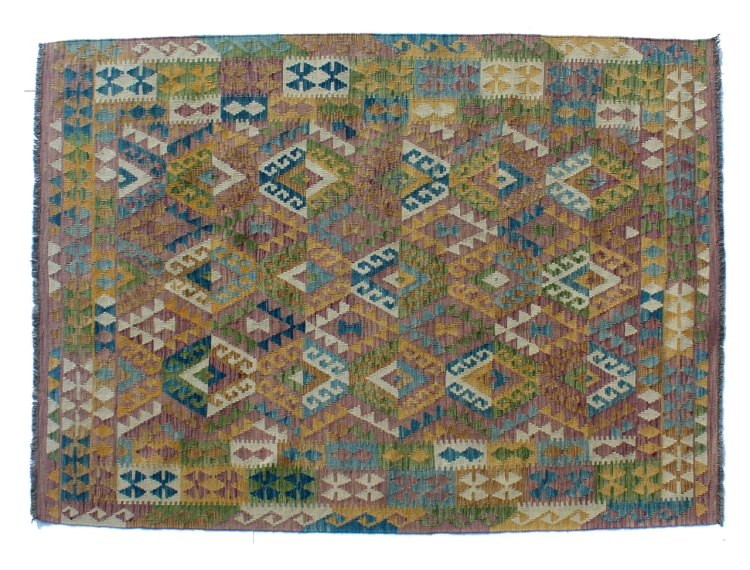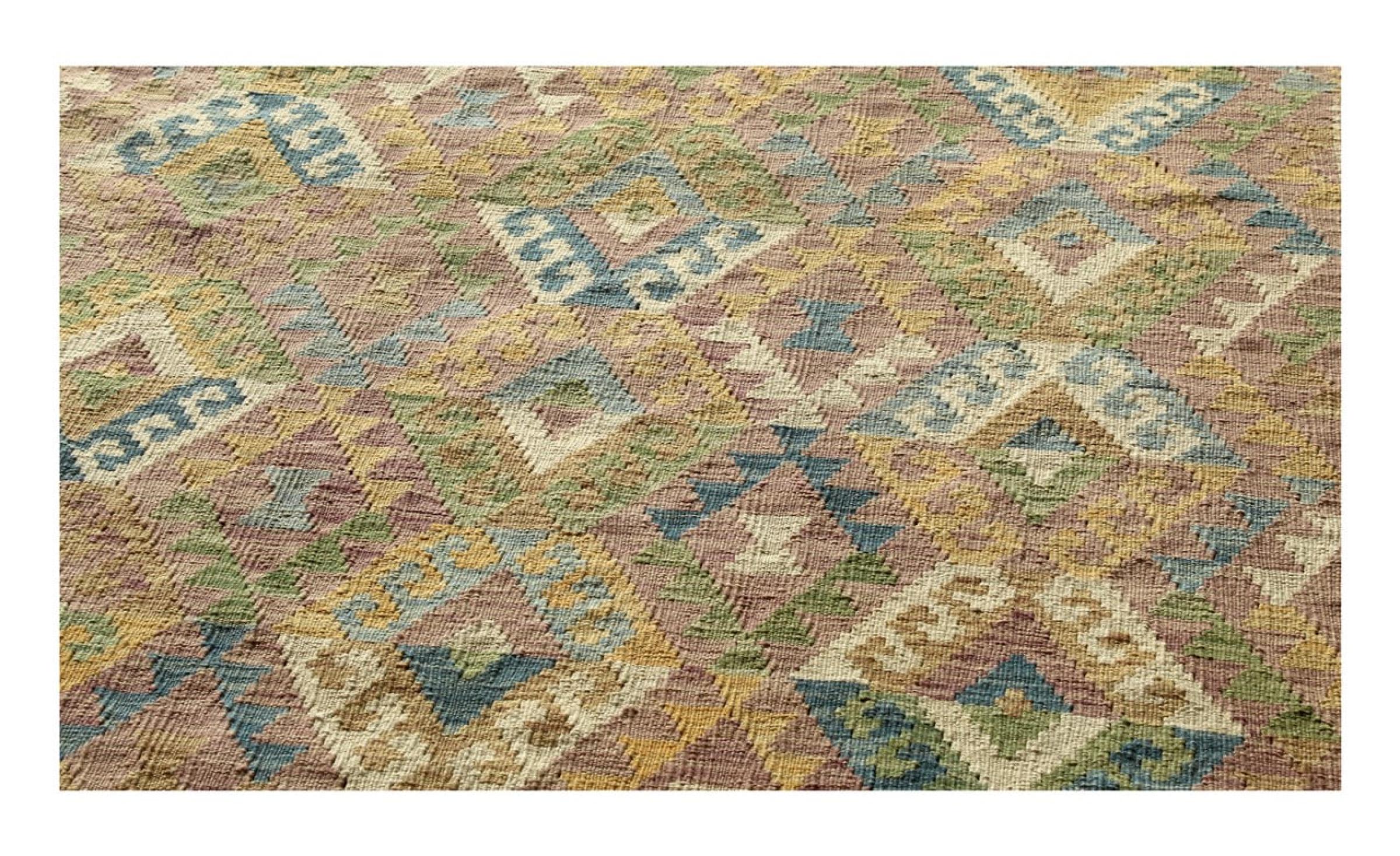 These Kilim rugs have a significant difference from hand-knotted rugs—they are handwoven. As a result, they do not have a high pile of wool and are often flatter and rougher than knotted wool rugs. Their construction is less intricate, making them generally much more affordable. Additionally, Kilim rugs are much lighter and can be laid out on either side. Handwoven Kilims originally come from what was once Persia and are now also widely produced in Afghanistan. They typically feature simple, straight-line patterns, which are characteristic of their weaving technique.