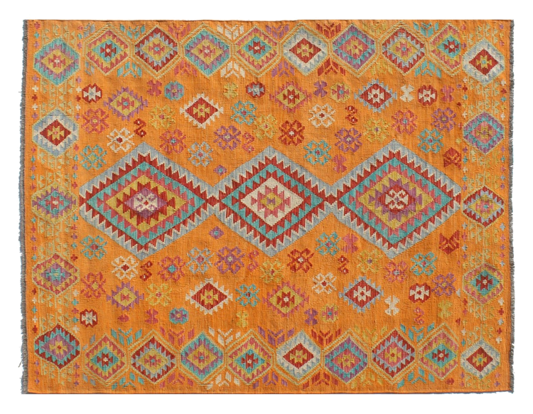These Kilim rugs have a significant difference from hand-knotted rugs—they are handwoven. As a result, they do not have a high pile of wool and are often flatter and rougher than knotted wool rugs. Their construction is less intricate, making them generally much more affordable. Additionally, Kilim rugs are much lighter and can be laid out on either side. Handwoven Kilims originally come from what was once Persia and are now also widely produced in Afghanistan. They typically feature simple, straight-line patterns, which are characteristic of their weaving technique.