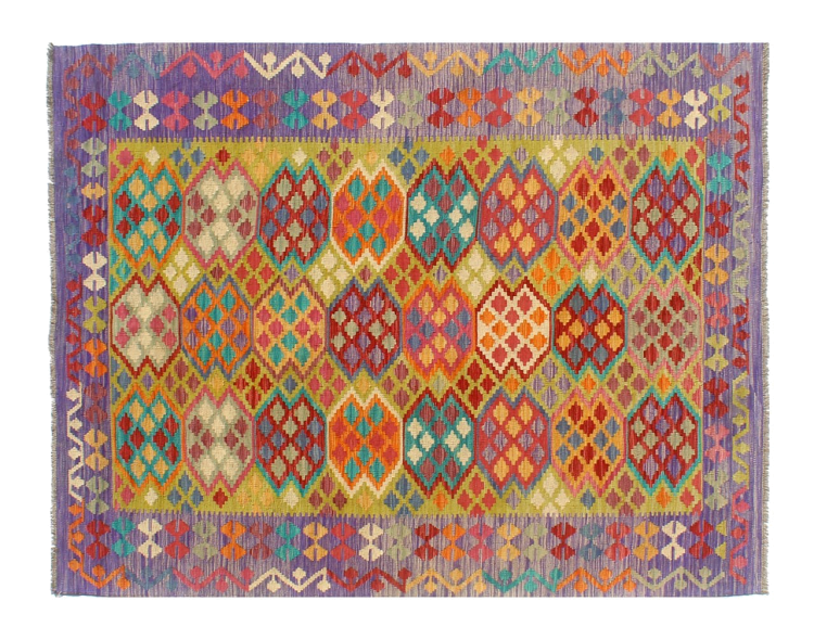These Kilim rugs have a significant difference from hand-knotted rugs—they are handwoven. As a result, they do not have a high pile of wool and are often flatter and rougher than knotted wool rugs. Their construction is less intricate, making them generally much more affordable. Additionally, Kilim rugs are much lighter and can be laid out on either side. Handwoven Kilims originally come from what was once Persia and are now also widely produced in Afghanistan. They typically feature simple, straight-line patterns, which are characteristic of their weaving technique.
