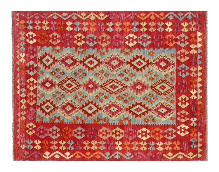 These Kilim rugs have a significant difference from hand-knotted rugs—they are handwoven. As a result, they do not have a high pile of wool and are often flatter and rougher than knotted wool rugs. Their construction is less intricate, making them generally much more affordable. Additionally, Kilim rugs are much lighter and can be laid out on either side. Handwoven Kilims originally come from what was once Persia and are now also widely produced in Afghanistan. They typically feature simple, straight-line patterns, which are characteristic of their weaving technique.