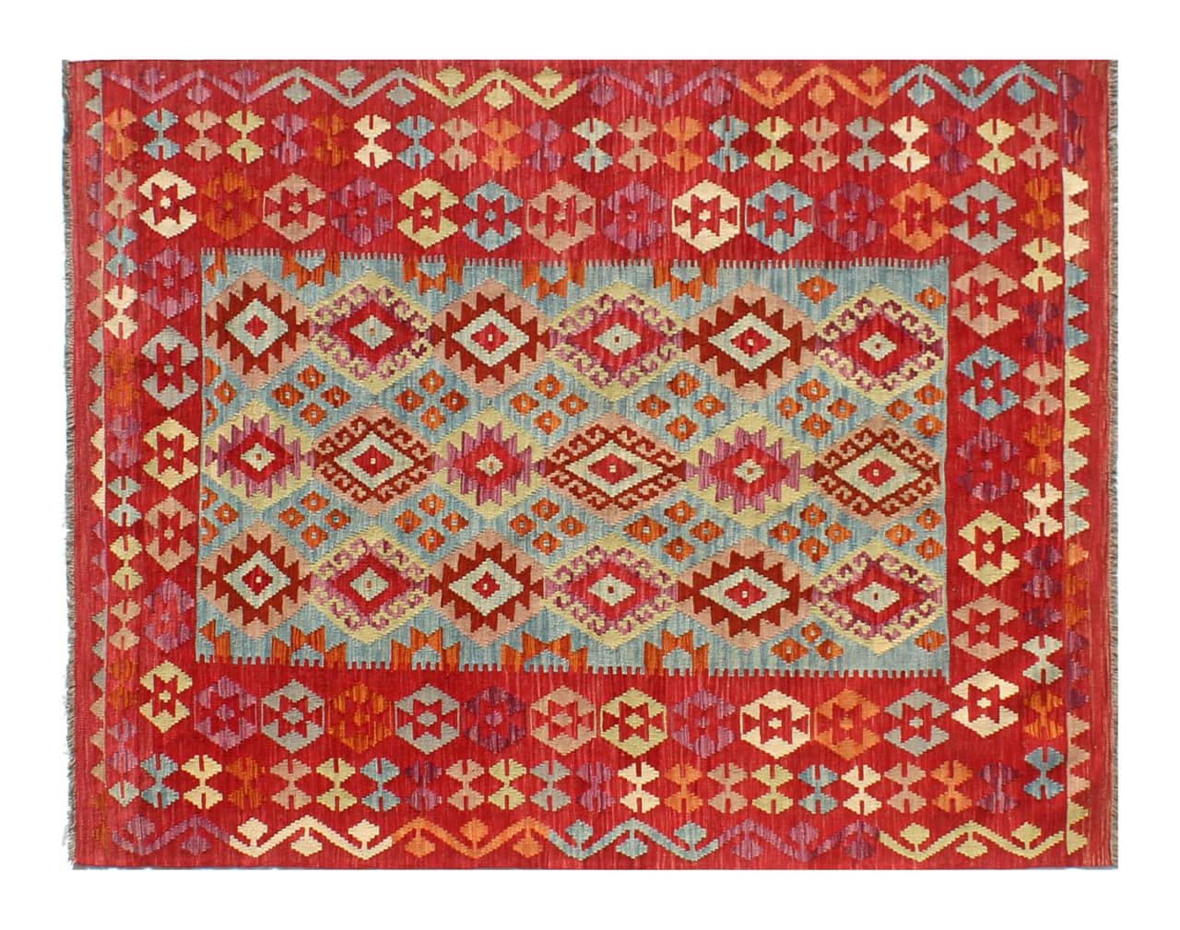 This Kilim Afghan rug has beautiful colors. It is handmade from fine wool. These patterns are traditional design elements that have already been used centuries ago. This particular kilim has been woven by hand in Afghanistan, a country with a long history in weaving and knotting rugs. The rug is robust and can be laid out on both sides.