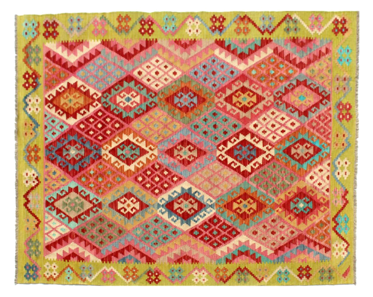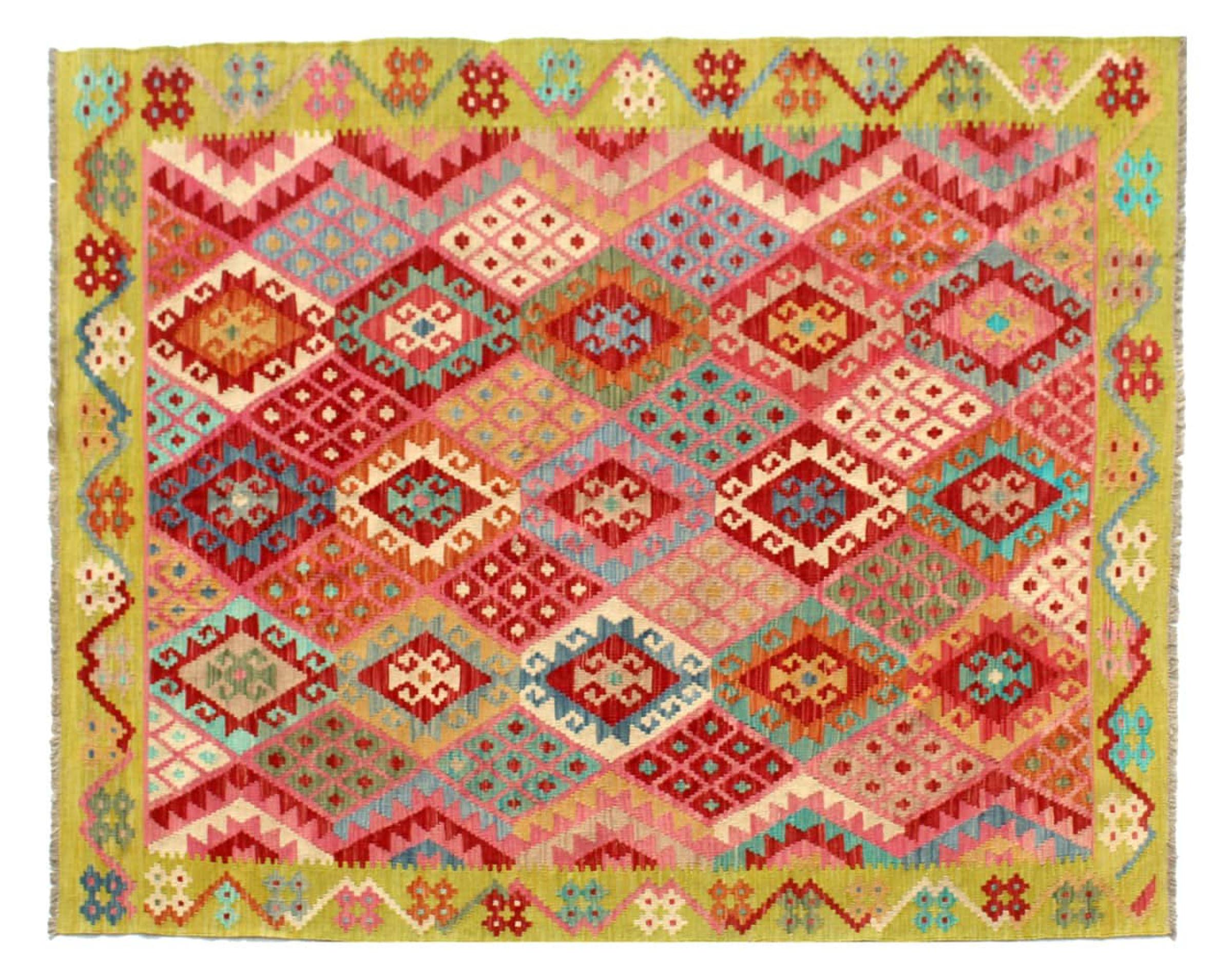 These Kilim rugs have a significant difference from hand-knotted rugs—they are handwoven. As a result, they do not have a high pile of wool and are often flatter and rougher than knotted wool rugs. Their construction is less intricate, making them generally much more affordable. Additionally, Kilim rugs are much lighter and can be laid out on either side. Handwoven Kilims originally come from what was once Persia and are now also widely produced in Afghanistan. They typically feature simple, straight-line patterns, which are characteristic of their weaving technique.