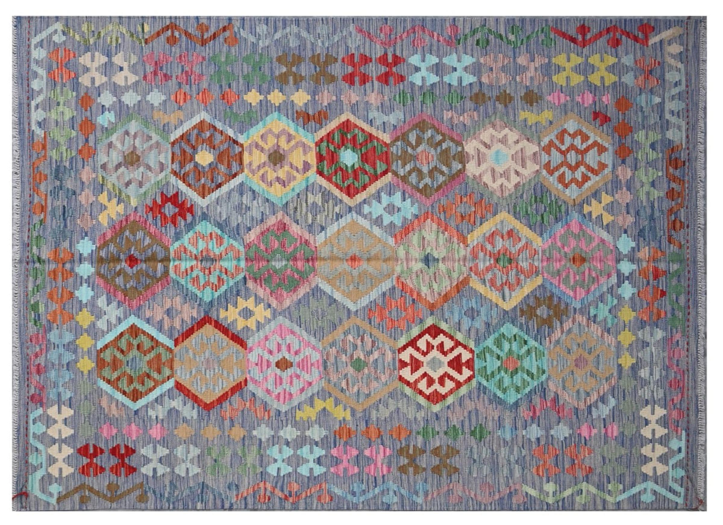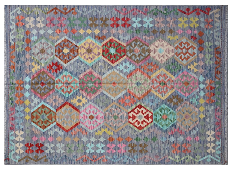 These Kilim rugs have a significant difference from hand-knotted rugs—they are handwoven. As a result, they do not have a high pile of wool and are often flatter and rougher than knotted wool rugs. Their construction is less intricate, making them generally much more affordable. Additionally, Kilim rugs are much lighter and can be laid out on either side. Handwoven Kilims originally come from what was once Persia and are now also widely produced in Afghanistan. They typically feature simple, straight-line patterns, which are characteristic of their weaving technique.