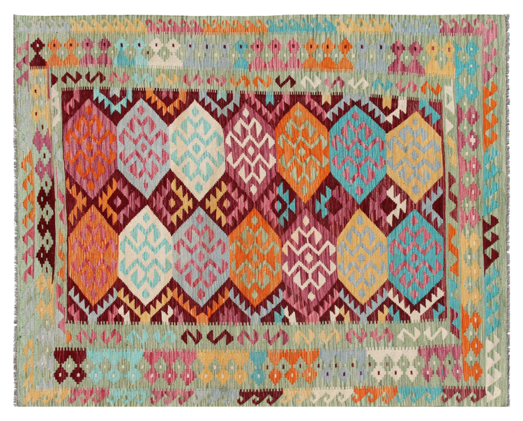 This Kilim Afghan rug has beautiful colors. It is handmade from fine wool. These patterns are traditional design elements that have already been used centuries ago. This particular kilim has been woven by hand in Afghanistan, a country with a long history in weaving and knotting rugs. The rug is robust and can be laid out on both sides.