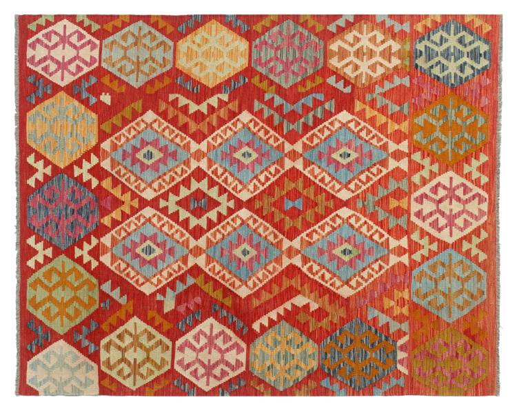 These Kilim rugs have a significant difference from hand-knotted rugs—they are handwoven. As a result, they do not have a high pile of wool and are often flatter and rougher than knotted wool rugs. Their construction is less intricate, making them generally much more affordable. Additionally, Kilim rugs are much lighter and can be laid out on either side. Handwoven Kilims originally come from what was once Persia and are now also widely produced in Afghanistan. They typically feature simple, straight-line patterns, which are characteristic of their weaving technique.