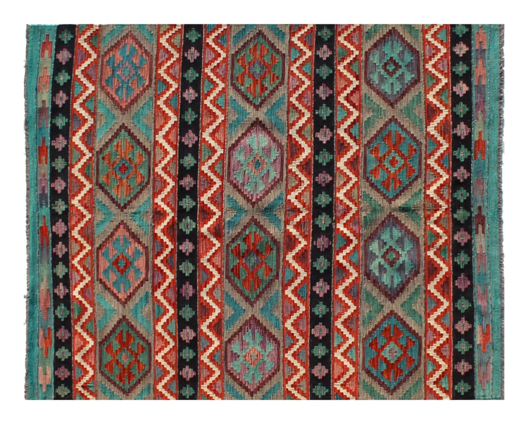 These Kilim rugs have a significant difference from hand-knotted rugs—they are handwoven. As a result, they do not have a high pile of wool and are often flatter and rougher than knotted wool rugs. Their construction is less intricate, making them generally much more affordable. Additionally, Kilim rugs are much lighter and can be laid out on either side. Handwoven Kilims originally come from what was once Persia and are now also widely produced in Afghanistan. They typically feature simple, straight-line patterns, which are characteristic of their weaving technique.