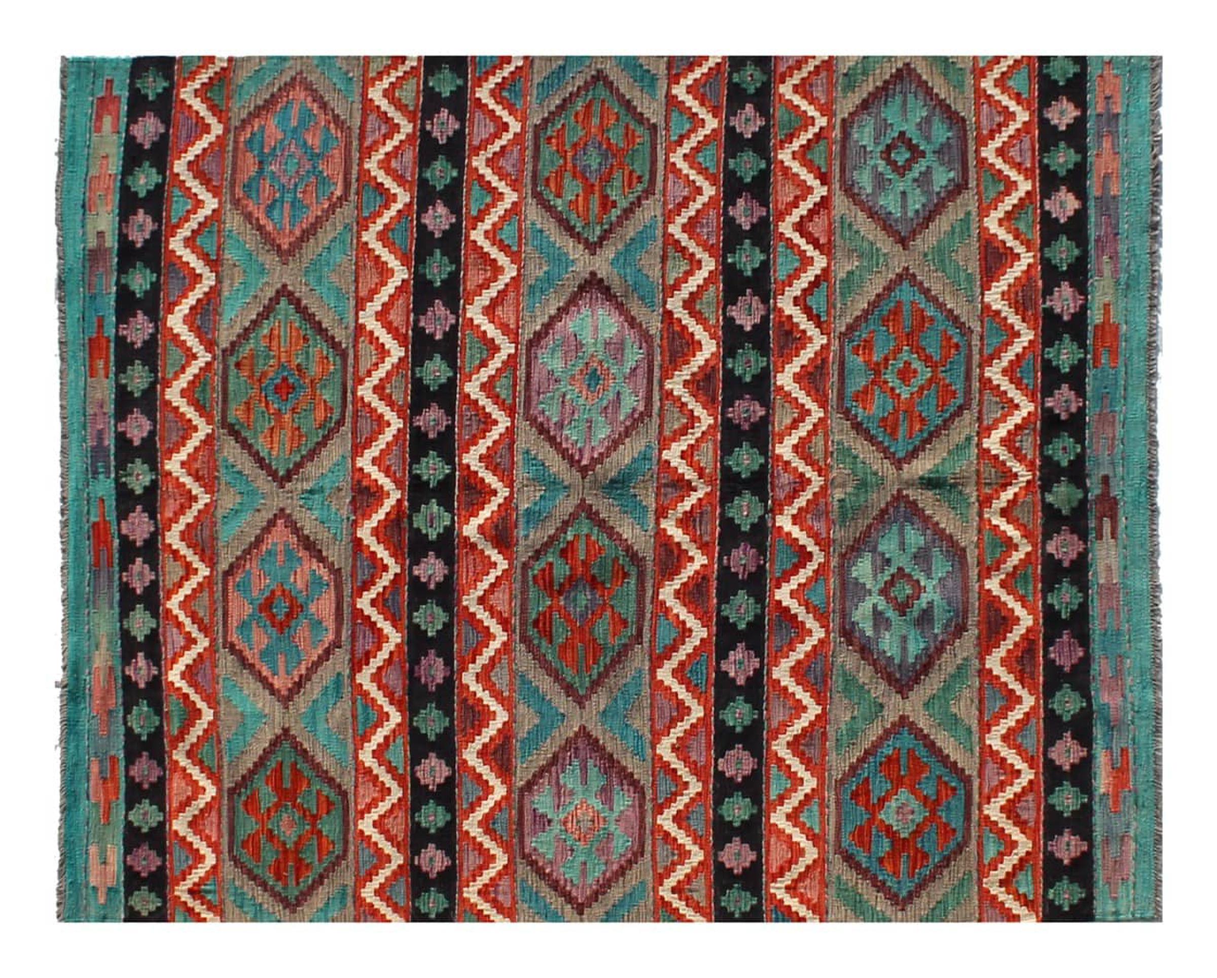 This Kilim Afghan rug has beautiful colors. It is handmade from fine wool. These patterns are traditional design elements that have already been used centuries ago. This particular kilim has been woven by hand in Afghanistan, a country with a long history in weaving and knotting rugs. The rug is robust and can be laid out on both sides.