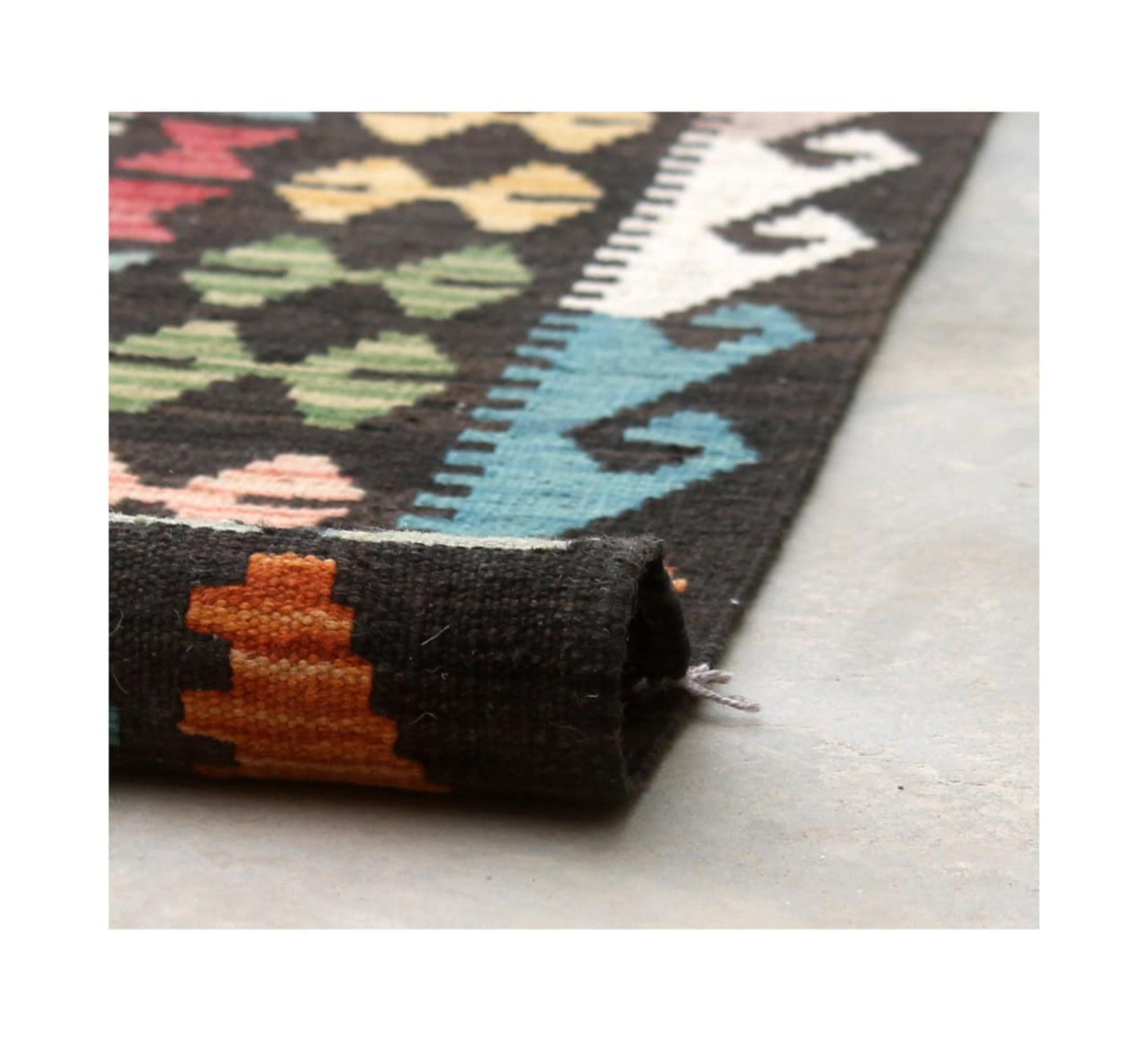 These Kilim rugs have a significant difference from hand-knotted rugs—they are handwoven. As a result, they do not have a high pile of wool and are often flatter and rougher than knotted wool rugs. Their construction is less intricate, making them generally much more affordable. Additionally, Kilim rugs are much lighter and can be laid out on either side. Handwoven Kilims originally come from what was once Persia and are now also widely produced in Afghanistan. They typically feature simple, straight-line patterns, which are characteristic of their weaving technique.