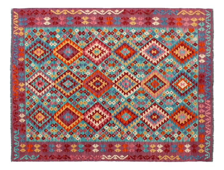 These Kilim rugs have a significant difference from hand-knotted rugs—they are handwoven. As a result, they do not have a high pile of wool and are often flatter and rougher than knotted wool rugs. Their construction is less intricate, making them generally much more affordable. Additionally, Kilim rugs are much lighter and can be laid out on either side. Handwoven Kilims originally come from what was once Persia and are now also widely produced in Afghanistan. They typically feature simple, straight-line patterns, which are characteristic of their weaving technique.