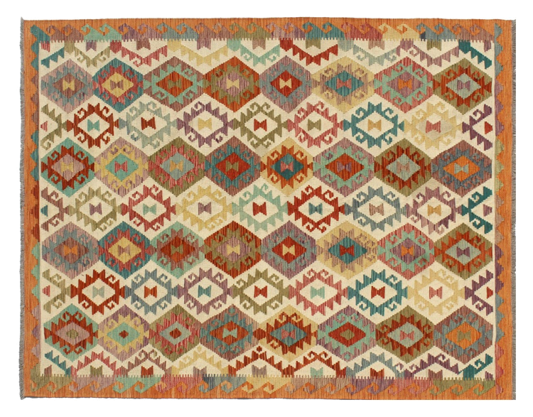 These Kilim rugs have a significant difference from hand-knotted rugs—they are handwoven. As a result, they do not have a high pile of wool and are often flatter and rougher than knotted wool rugs. Their construction is less intricate, making them generally much more affordable. Additionally, Kilim rugs are much lighter and can be laid out on either side. Handwoven Kilims originally come from what was once Persia and are now also widely produced in Afghanistan. They typically feature simple, straight-line patterns, which are characteristic of their weaving technique.
