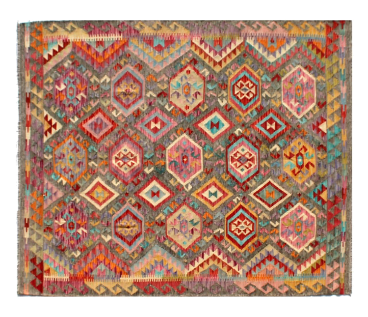 These Kilim rugs have a significant difference from hand-knotted rugs—they are handwoven. As a result, they do not have a high pile of wool and are often flatter and rougher than knotted wool rugs. Their construction is less intricate, making them generally much more affordable. Additionally, Kilim rugs are much lighter and can be laid out on either side. Handwoven Kilims originally come from what was once Persia and are now also widely produced in Afghanistan. They typically feature simple, straight-line patterns, which are characteristic of their weaving technique.