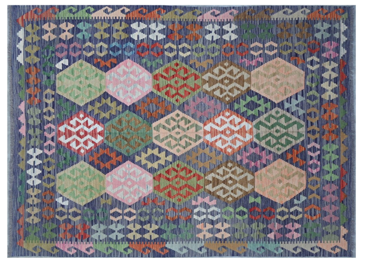 These Kilim rugs have a significant difference from hand-knotted rugs—they are handwoven. As a result, they do not have a high pile of wool and are often flatter and rougher than knotted wool rugs. Their construction is less intricate, making them generally much more affordable. Additionally, Kilim rugs are much lighter and can be laid out on either side. Handwoven Kilims originally come from what was once Persia and are now also widely produced in Afghanistan. They typically feature simple, straight-line patterns, which are characteristic of their weaving technique.