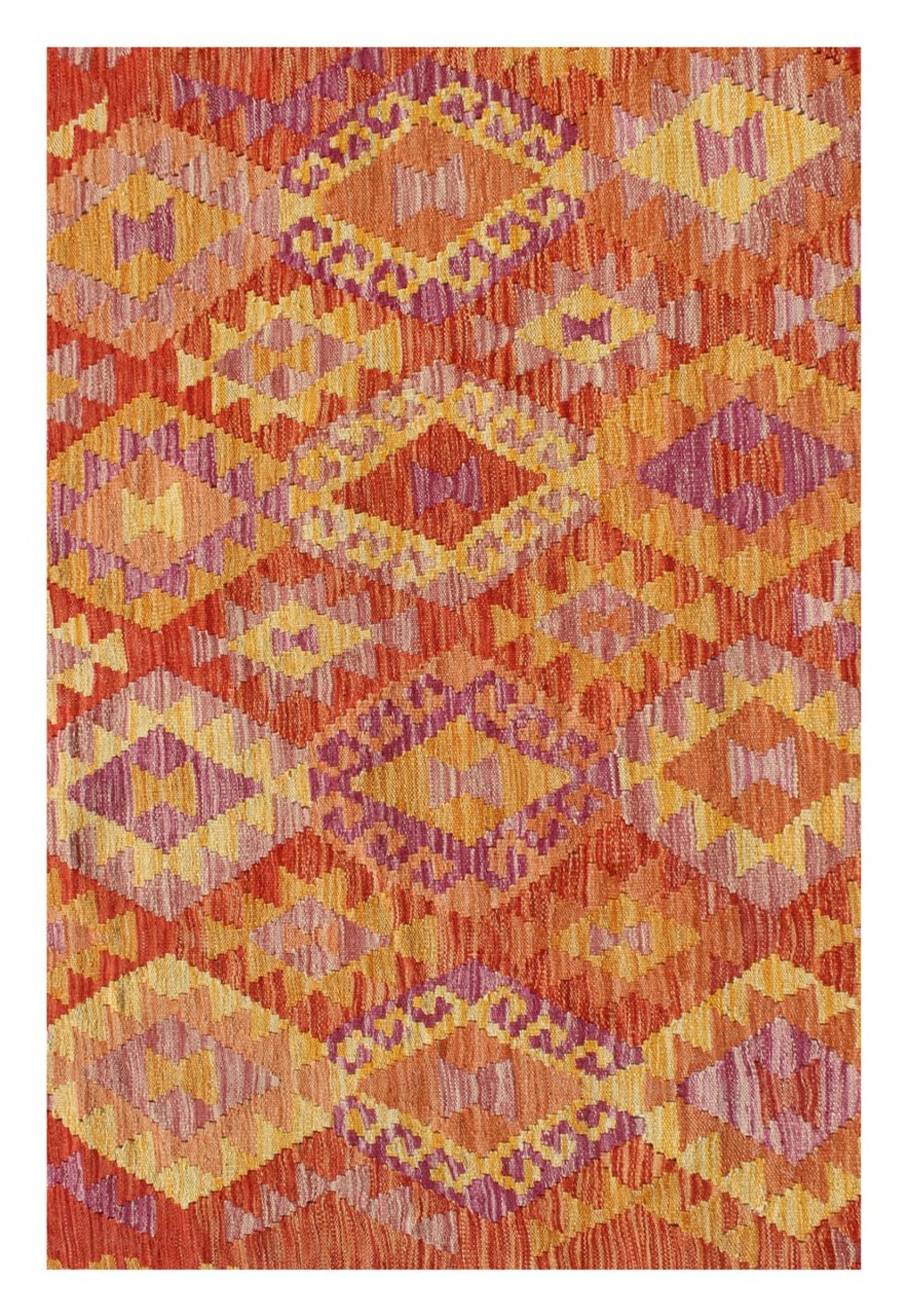 These Kilim rugs have a significant difference from hand-knotted rugs—they are handwoven. As a result, they do not have a high pile of wool and are often flatter and rougher than knotted wool rugs. Their construction is less intricate, making them generally much more affordable. Additionally, Kilim rugs are much lighter and can be laid out on either side. Handwoven Kilims originally come from what was once Persia and are now also widely produced in Afghanistan. They typically feature simple, straight-line patterns, which are characteristic of their weaving technique.