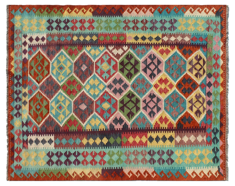 These Kilim rugs have a significant difference from hand-knotted rugs—they are handwoven. As a result, they do not have a high pile of wool and are often flatter and rougher than knotted wool rugs. Their construction is less intricate, making them generally much more affordable. Additionally, Kilim rugs are much lighter and can be laid out on either side. Handwoven Kilims originally come from what was once Persia and are now also widely produced in Afghanistan. They typically feature simple, straight-line patterns, which are characteristic of their weaving technique.