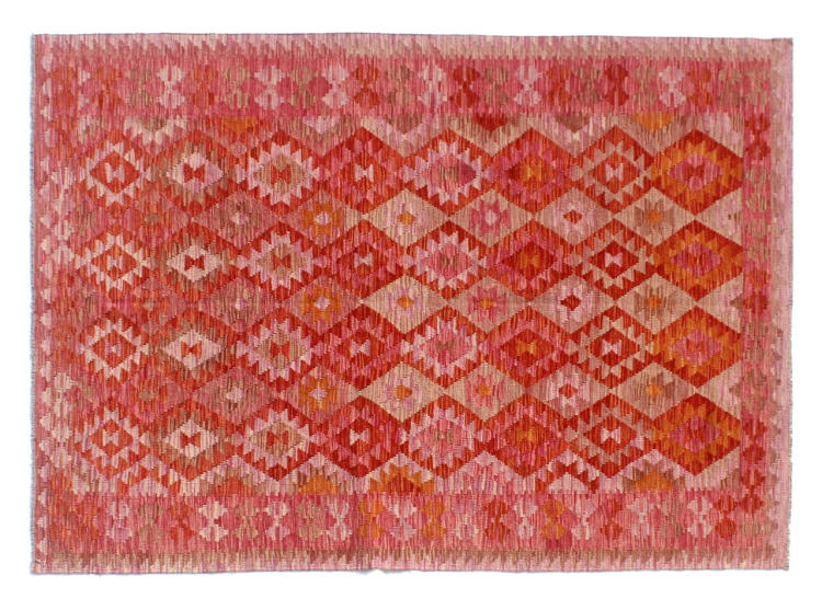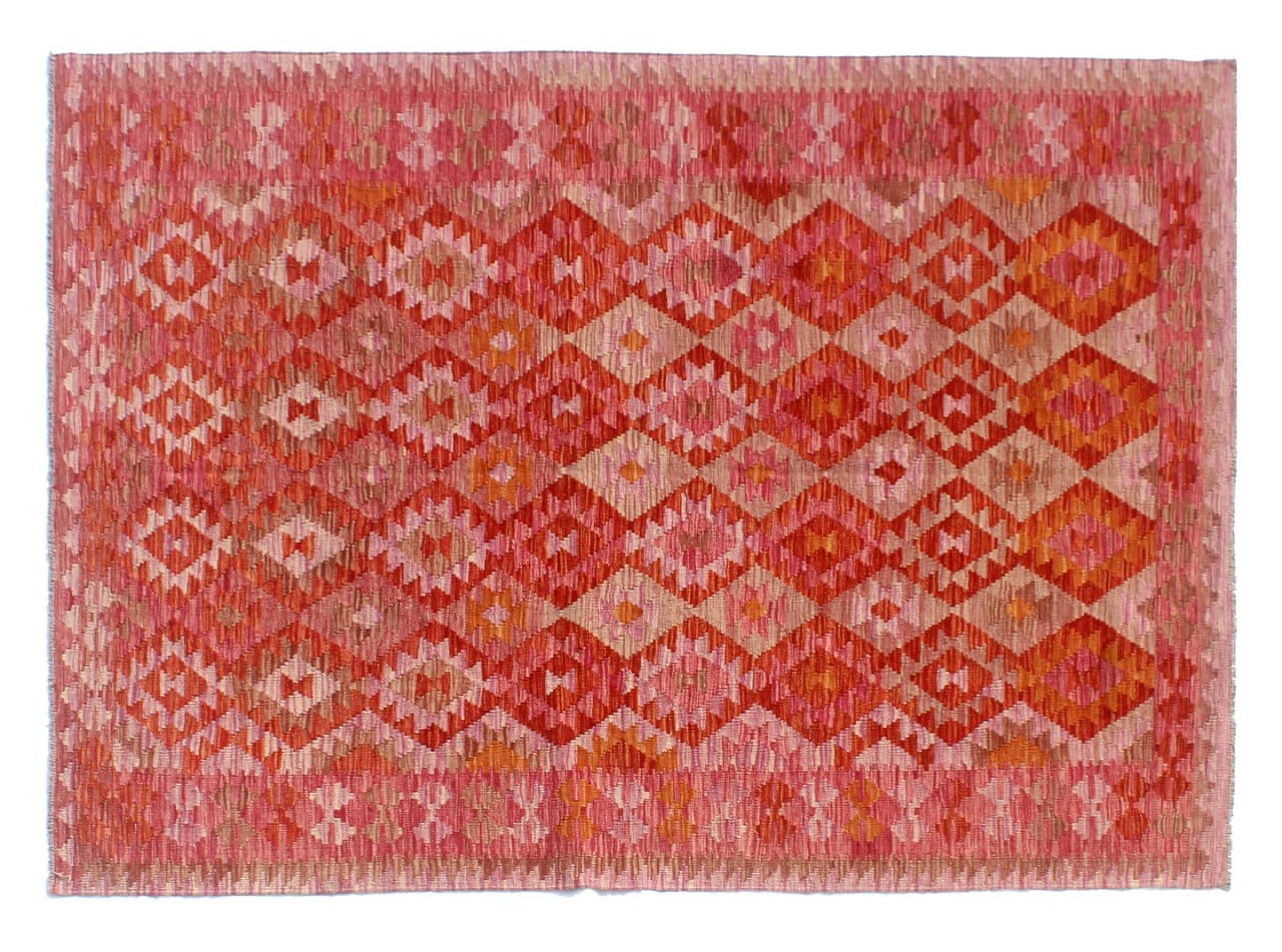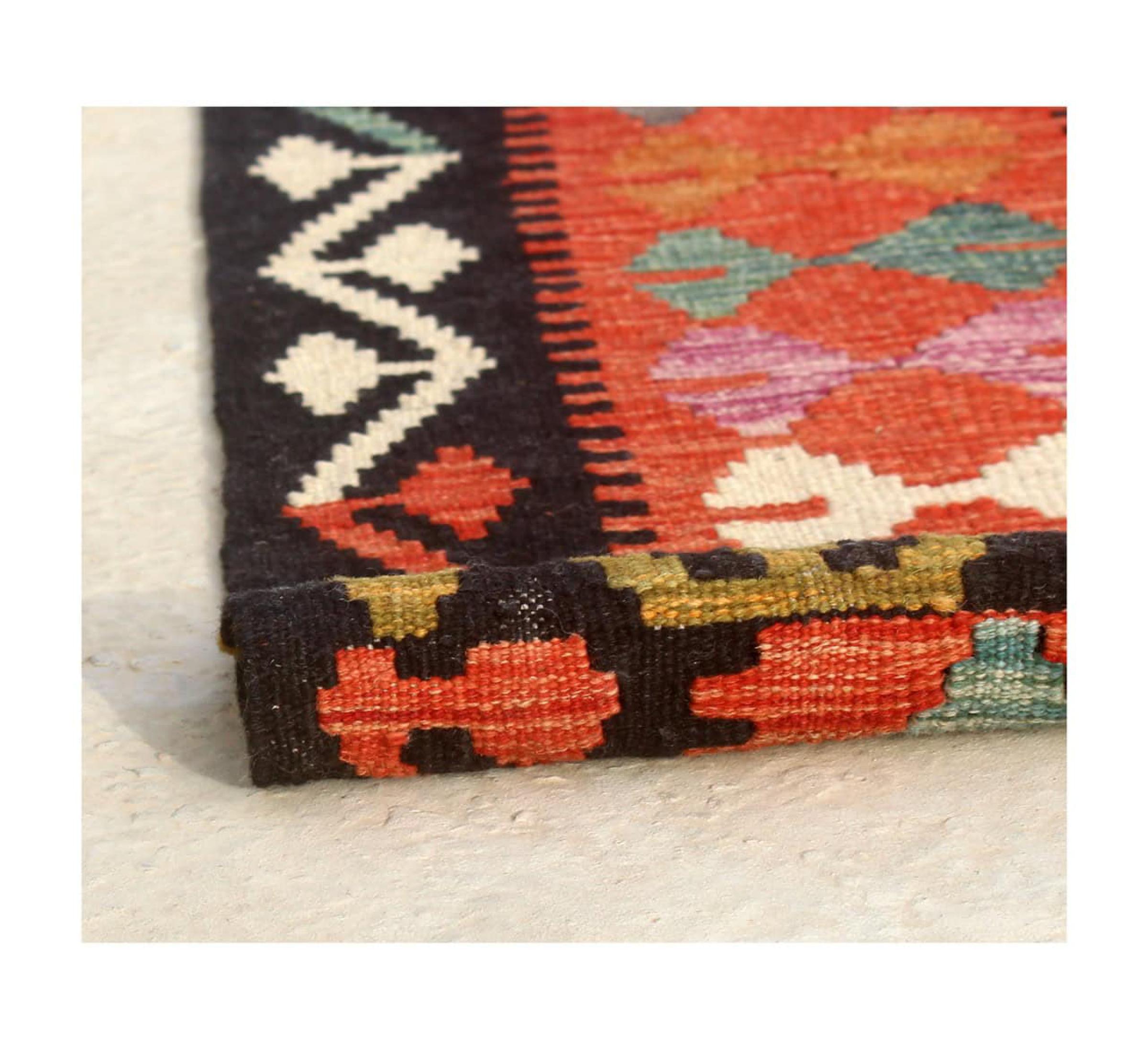 These Kilim rugs have a significant difference from hand-knotted rugs—they are handwoven. As a result, they do not have a high pile of wool and are often flatter and rougher than knotted wool rugs. Their construction is less intricate, making them generally much more affordable. Additionally, Kilim rugs are much lighter and can be laid out on either side. Handwoven Kilims originally come from what was once Persia and are now also widely produced in Afghanistan. They typically feature simple, straight-line patterns, which are characteristic of their weaving technique.