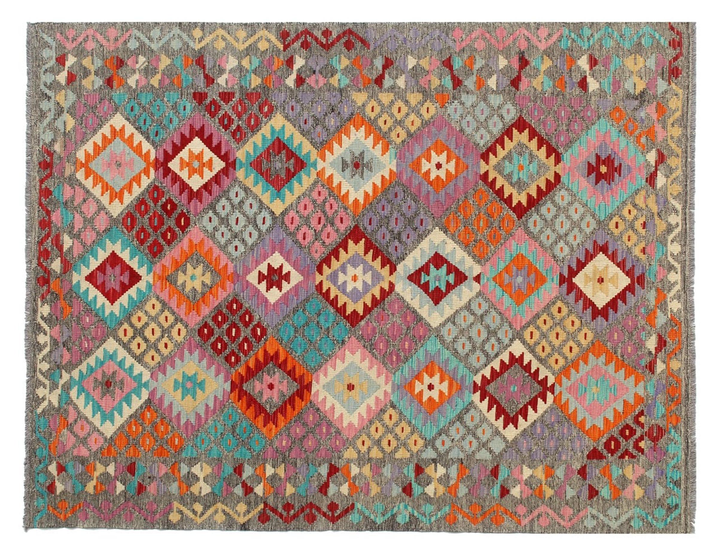 This Kilim Afghan rug has beautiful colors. It is handmade from fine wool. These patterns are traditional design elements that have already been used centuries ago. This particular kilim has been woven by hand in Afghanistan, a country with a long history in weaving and knotting rugs. The rug is robust and can be laid out on both sides.