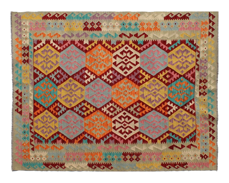 These Kilim rugs have a significant difference from hand-knotted rugs—they are handwoven. As a result, they do not have a high pile of wool and are often flatter and rougher than knotted wool rugs. Their construction is less intricate, making them generally much more affordable. Additionally, Kilim rugs are much lighter and can be laid out on either side. Handwoven Kilims originally come from what was once Persia and are now also widely produced in Afghanistan. They typically feature simple, straight-line patterns, which are characteristic of their weaving technique.