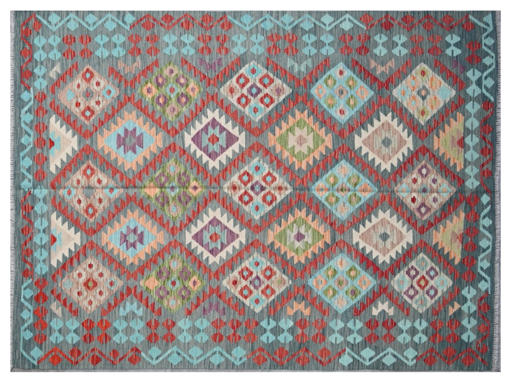 These Kilim rugs have a significant difference from hand-knotted rugs—they are handwoven. As a result, they do not have a high pile of wool and are often flatter and rougher than knotted wool rugs. Their construction is less intricate, making them generally much more affordable. Additionally, Kilim rugs are much lighter and can be laid out on either side. Handwoven Kilims originally come from what was once Persia and are now also widely produced in Afghanistan. They typically feature simple, straight-line patterns, which are characteristic of their weaving technique.