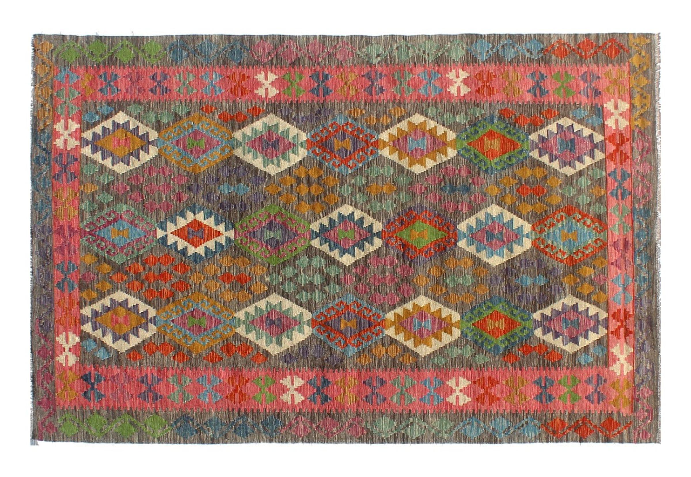 This Kilim Afghan rug has beautiful colors. It is handmade from fine wool. These patterns are traditional design elements that have already been used centuries ago. This particular kilim has been woven by hand in Afghanistan, a country with a long history in weaving and knotting rugs. The rug is robust and can be laid out on both sides.