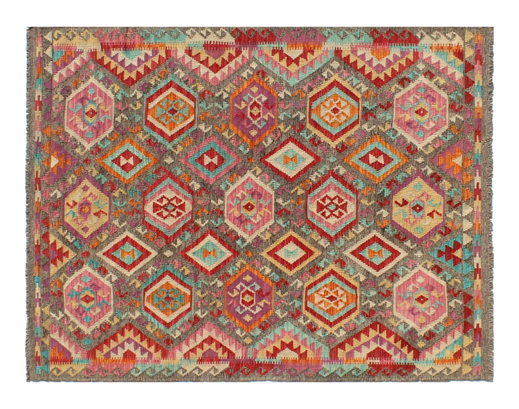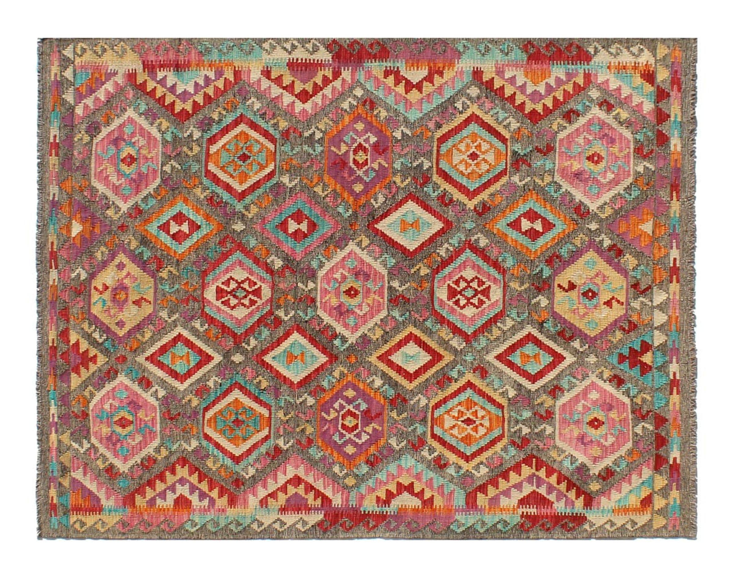 This Kilim Afghan rug has beautiful colors. It is handmade from fine wool. These patterns are traditional design elements that have already been used centuries ago. This particular kilim has been woven by hand in Afghanistan, a country with a long history in weaving and knotting rugs. The rug is robust and can be laid out on both sides.