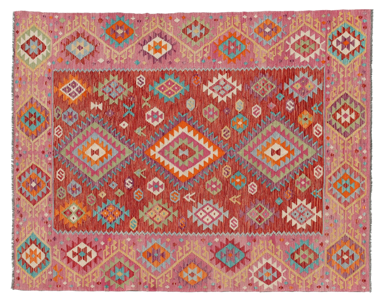 These Kilim rugs have a significant difference from hand-knotted rugs—they are handwoven. As a result, they do not have a high pile of wool and are often flatter and rougher than knotted wool rugs. Their construction is less intricate, making them generally much more affordable. Additionally, Kilim rugs are much lighter and can be laid out on either side. Handwoven Kilims originally come from what was once Persia and are now also widely produced in Afghanistan. They typically feature simple, straight-line patterns, which are characteristic of their weaving technique.