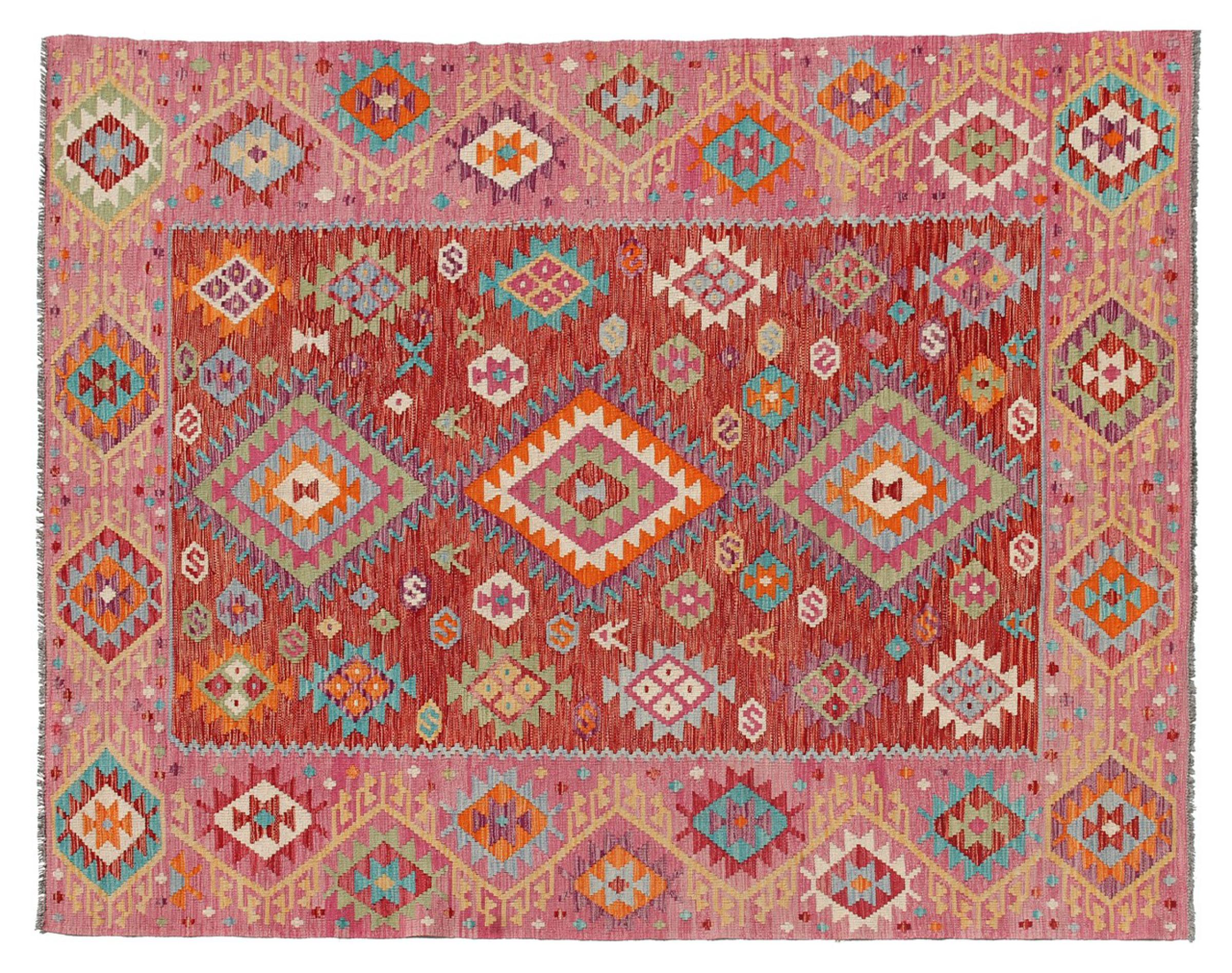 This Kilim Afghan rug has beautiful colors. It is handmade from fine wool. These patterns are traditional design elements that have already been used centuries ago. This particular kilim has been woven by hand in Afghanistan, a country with a long history in weaving and knotting rugs. The rug is robust and can be laid out on both sides.