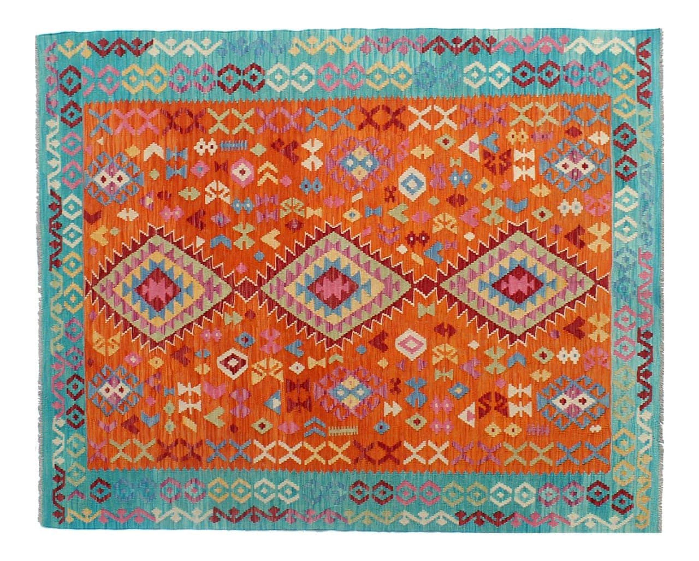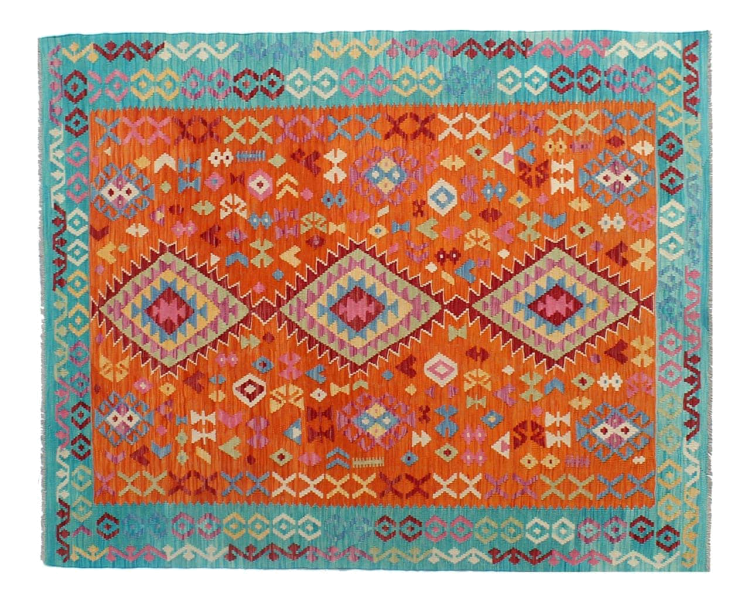 These Kilim rugs have a significant difference from hand-knotted rugs—they are handwoven. As a result, they do not have a high pile of wool and are often flatter and rougher than knotted wool rugs. Their construction is less intricate, making them generally much more affordable. Additionally, Kilim rugs are much lighter and can be laid out on either side. Handwoven Kilims originally come from what was once Persia and are now also widely produced in Afghanistan. They typically feature simple, straight-line patterns, which are characteristic of their weaving technique.