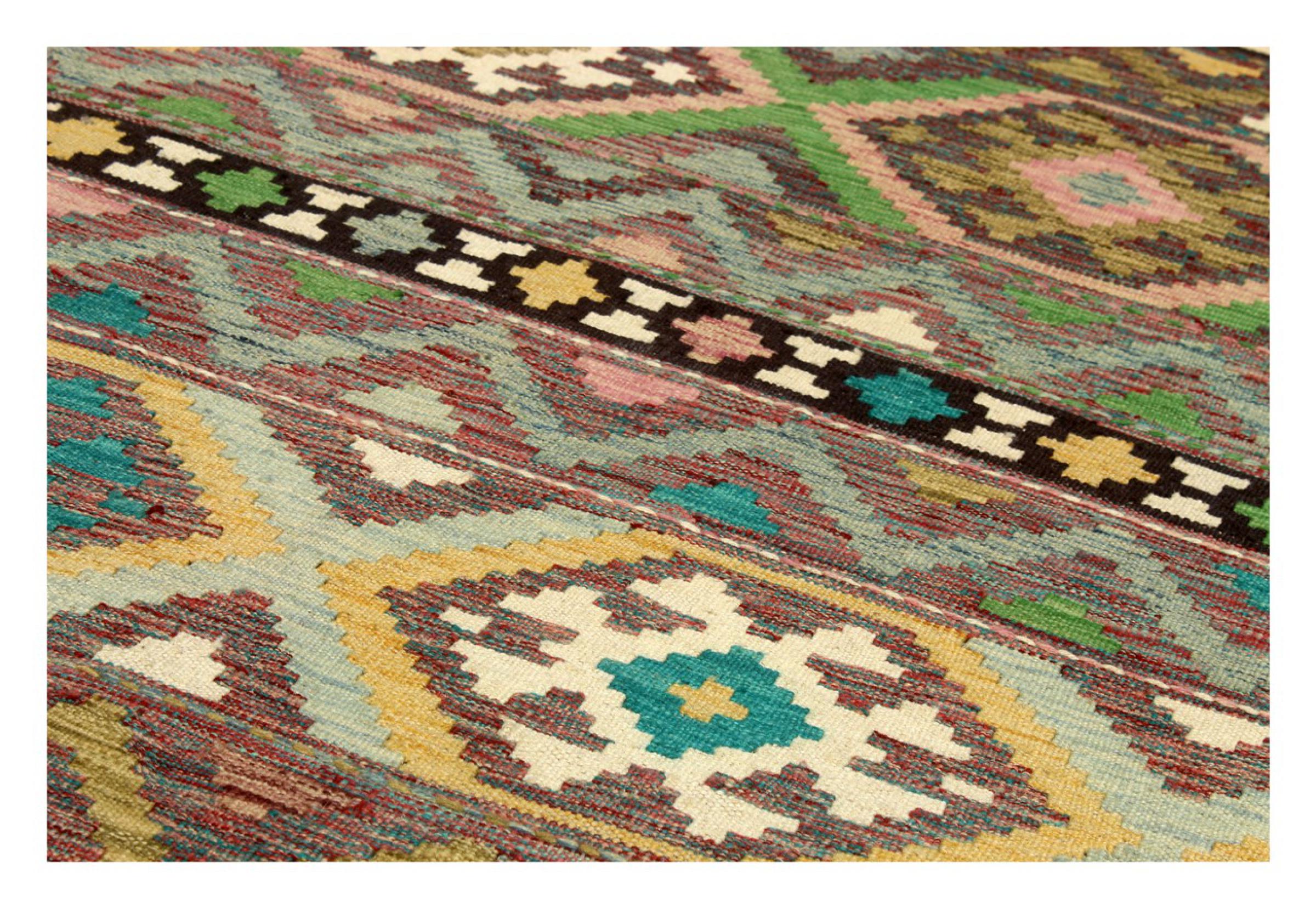 This Kilim Afghan rug has beautiful colors. It is handmade from fine wool. These patterns are traditional design elements that have already been used centuries ago. This particular kilim has been woven by hand in Afghanistan, a country with a long history in weaving and knotting rugs. The rug is robust and can be laid out on both sides.