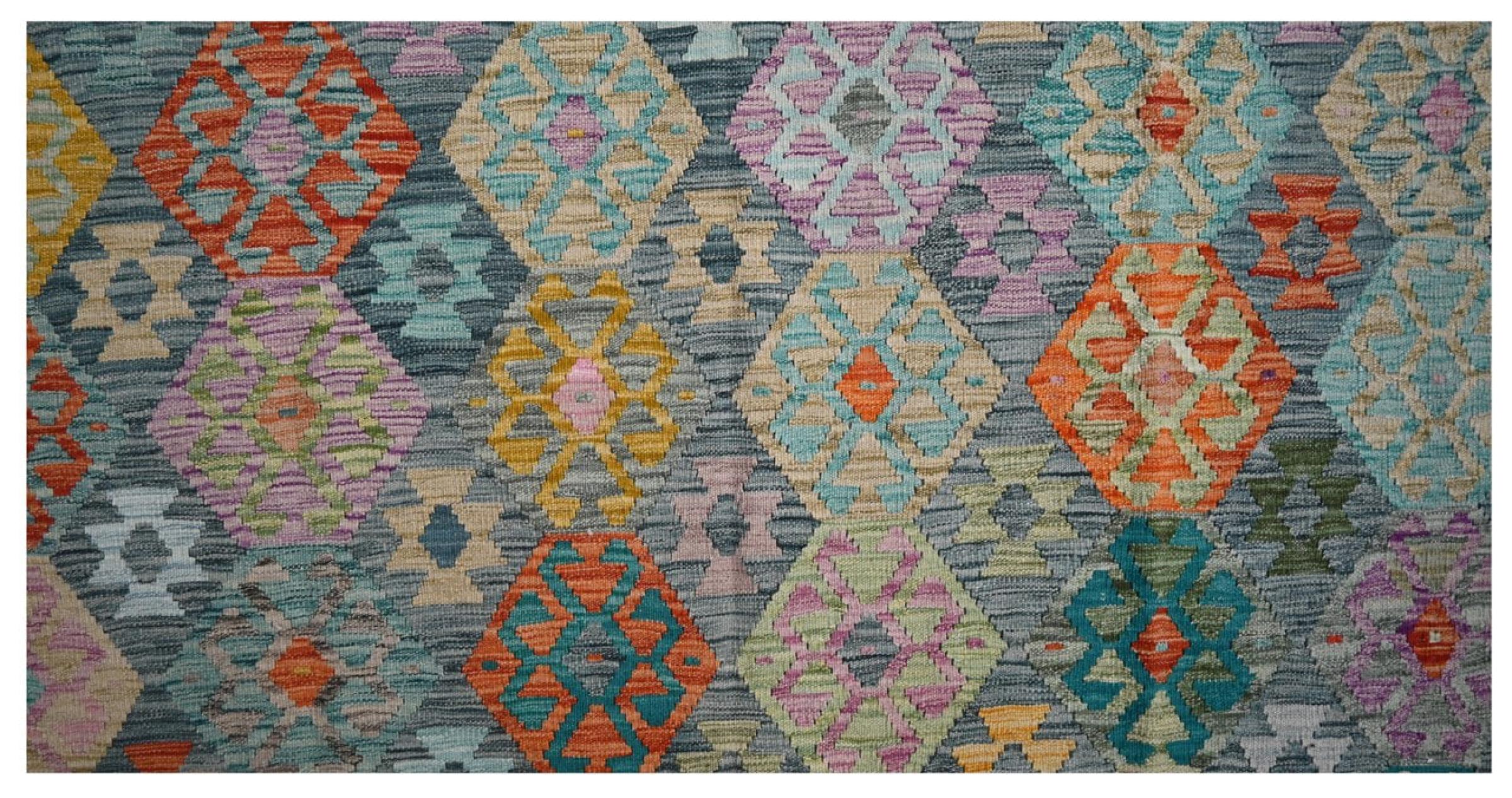 These Kilim rugs have a significant difference from hand-knotted rugs—they are handwoven. As a result, they do not have a high pile of wool and are often flatter and rougher than knotted wool rugs. Their construction is less intricate, making them generally much more affordable. Additionally, Kilim rugs are much lighter and can be laid out on either side. Handwoven Kilims originally come from what was once Persia and are now also widely produced in Afghanistan. They typically feature simple, straight-line patterns, which are characteristic of their weaving technique.