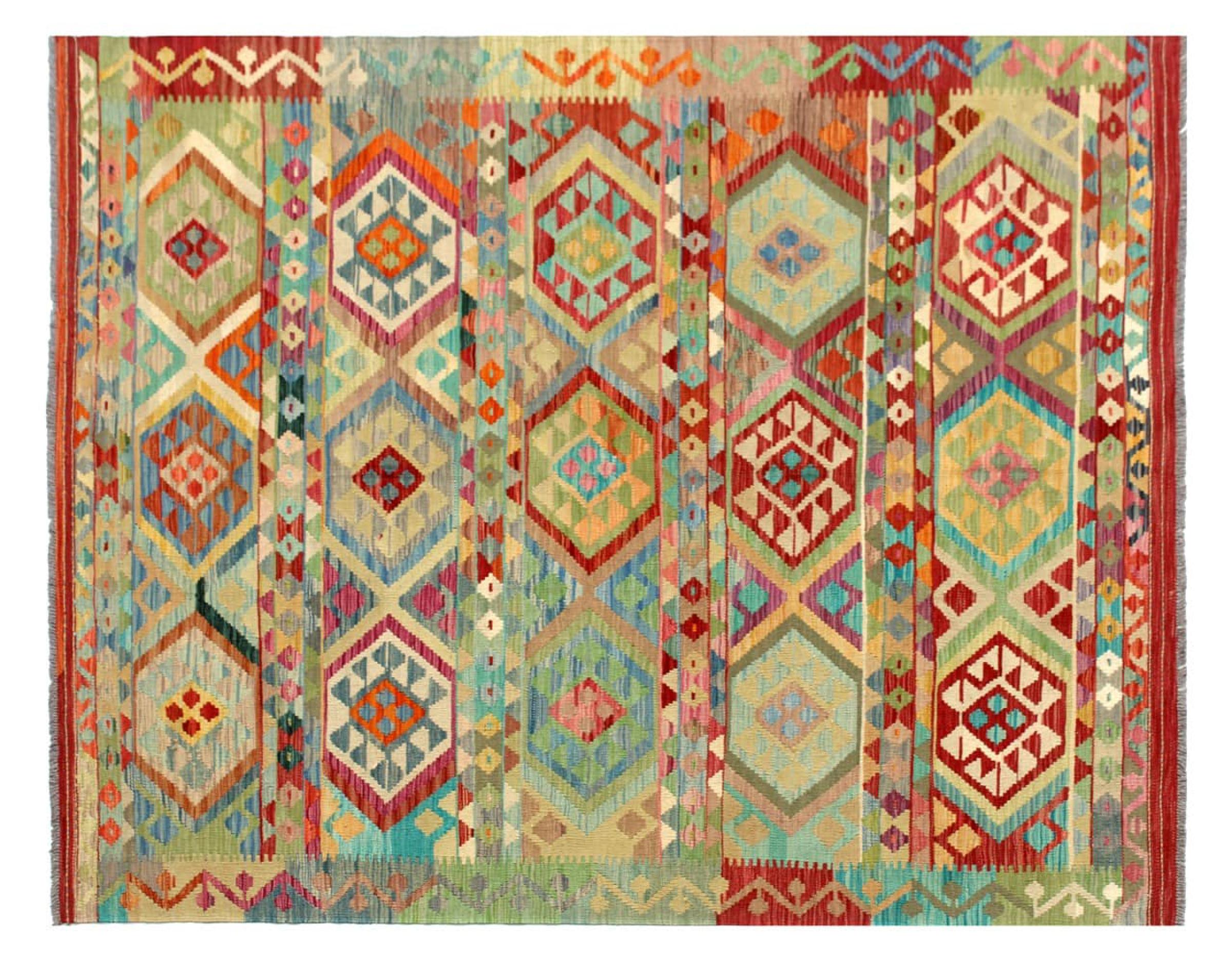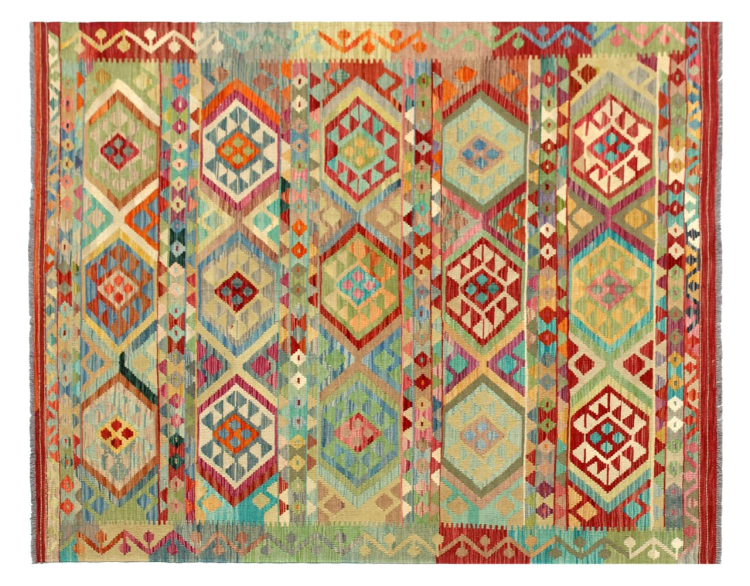 These Kilim rugs have a significant difference from hand-knotted rugs—they are handwoven. As a result, they do not have a high pile of wool and are often flatter and rougher than knotted wool rugs. Their construction is less intricate, making them generally much more affordable. Additionally, Kilim rugs are much lighter and can be laid out on either side. Handwoven Kilims originally come from what was once Persia and are now also widely produced in Afghanistan. They typically feature simple, straight-line patterns, which are characteristic of their weaving technique.
