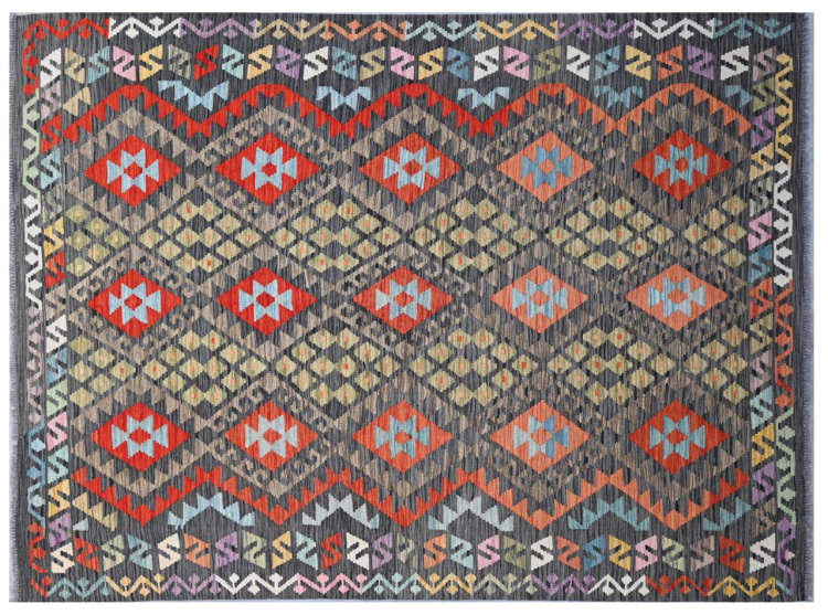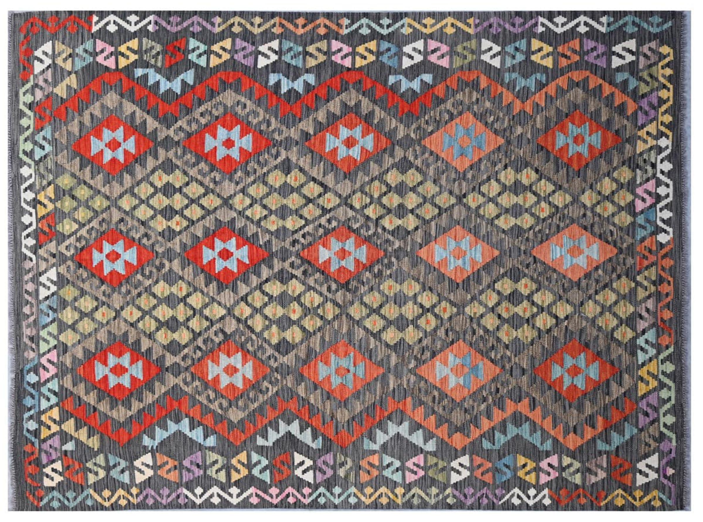 These Kilim rugs have a significant difference from hand-knotted rugs—they are handwoven. As a result, they do not have a high pile of wool and are often flatter and rougher than knotted wool rugs. Their construction is less intricate, making them generally much more affordable. Additionally, Kilim rugs are much lighter and can be laid out on either side. Handwoven Kilims originally come from what was once Persia and are now also widely produced in Afghanistan. They typically feature simple, straight-line patterns, which are characteristic of their weaving technique.