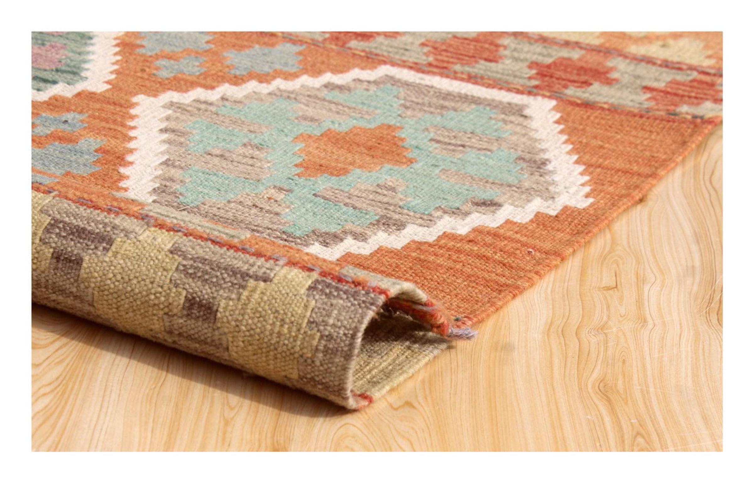These Kilim rugs have a significant difference from hand-knotted rugs—they are handwoven. As a result, they do not have a high pile of wool and are often flatter and rougher than knotted wool rugs. Their construction is less intricate, making them generally much more affordable. Additionally, Kilim rugs are much lighter and can be laid out on either side. Handwoven Kilims originally come from what was once Persia and are now also widely produced in Afghanistan. They typically feature simple, straight-line patterns, which are characteristic of their weaving technique.