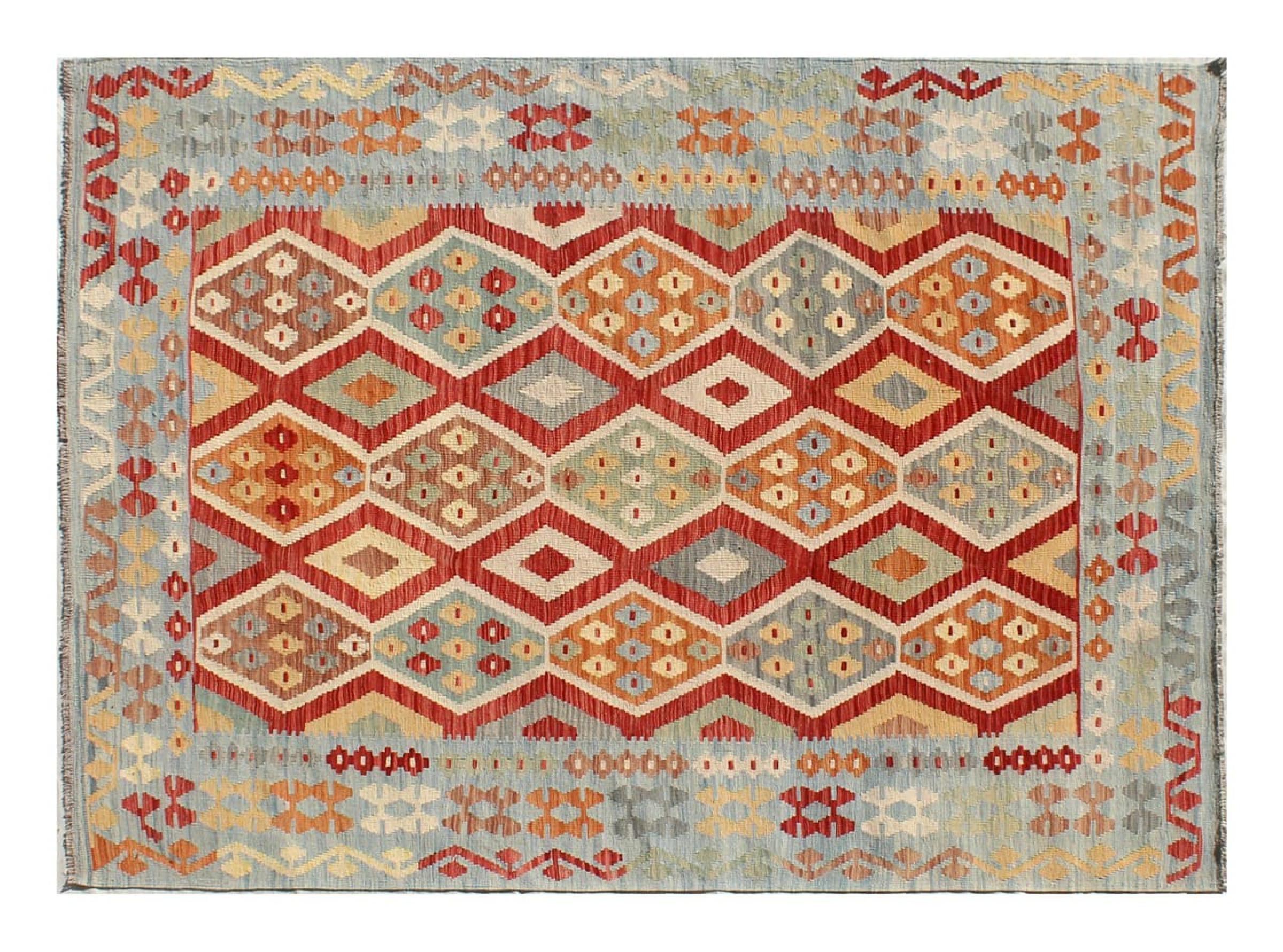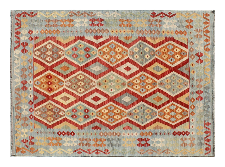 These Kilim rugs have a significant difference from hand-knotted rugs—they are handwoven. As a result, they do not have a high pile of wool and are often flatter and rougher than knotted wool rugs. Their construction is less intricate, making them generally much more affordable. Additionally, Kilim rugs are much lighter and can be laid out on either side. Handwoven Kilims originally come from what was once Persia and are now also widely produced in Afghanistan. They typically feature simple, straight-line patterns, which are characteristic of their weaving technique.