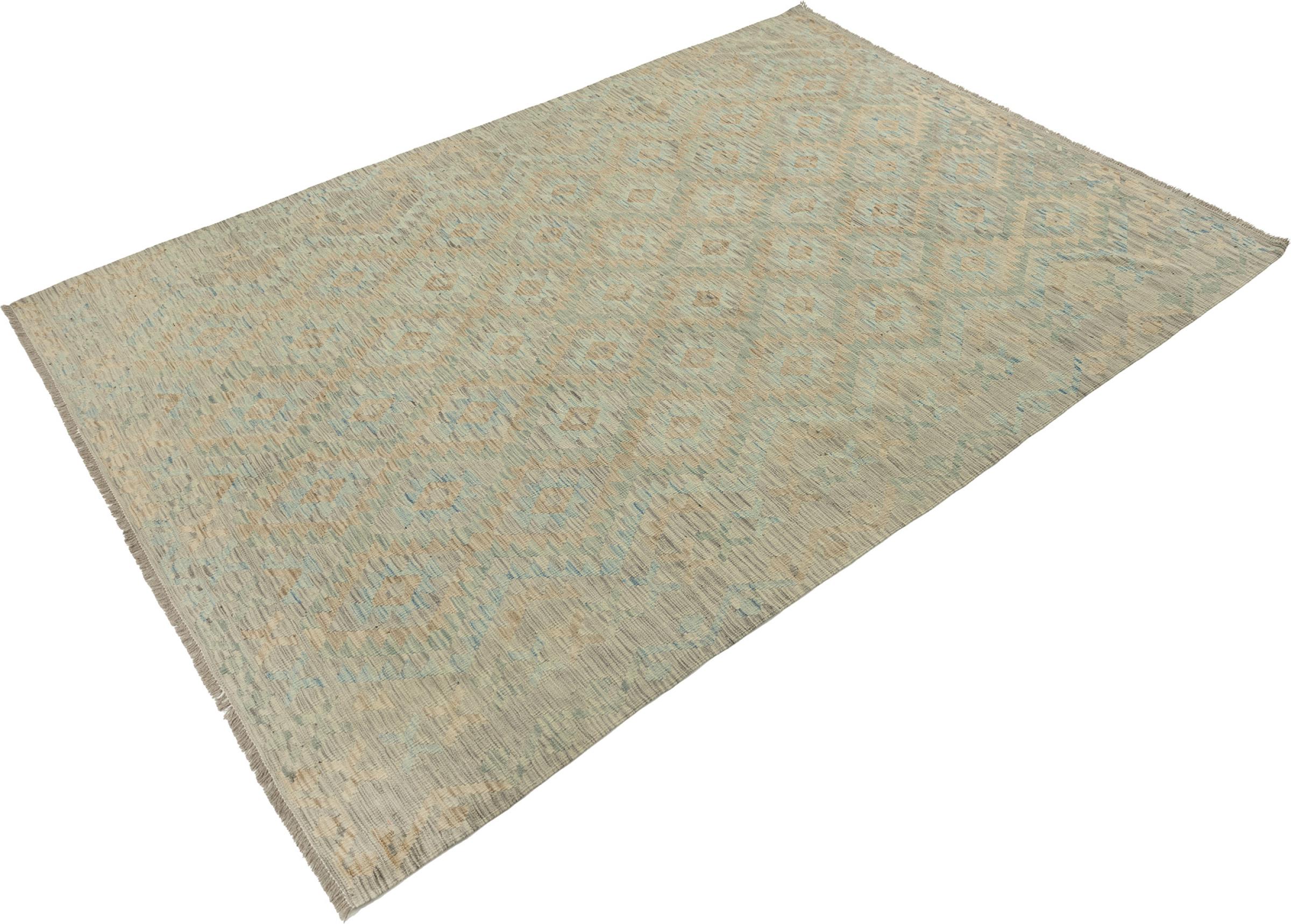 This Kilim Afghan rug has beautiful colors. It is handmade from fine wool. These patterns are traditional design elements that have already been used centuries ago. This particular kilim has been woven by hand in Afghanistan, a country with a long history in weaving and knotting rugs. The rug is robust and can be laid out on both sides.