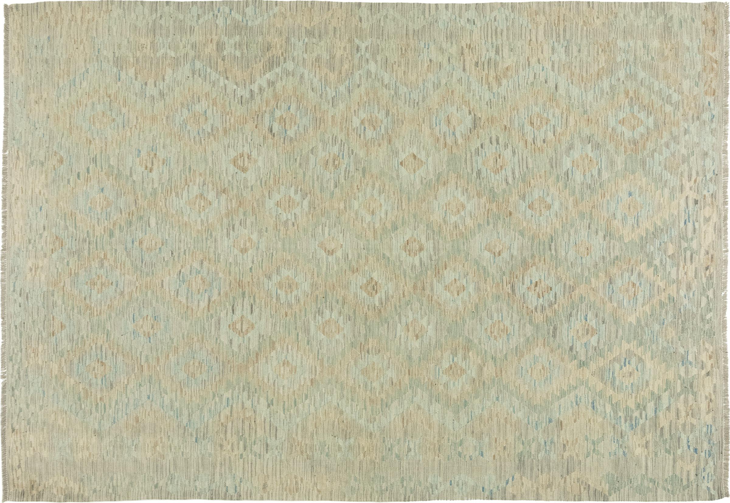 These Kilim rugs have a significant difference from hand-knotted rugs—they are handwoven. As a result, they do not have a high pile of wool and are often flatter and rougher than knotted wool rugs. Their construction is less intricate, making them generally much more affordable. Additionally, Kilim rugs are much lighter and can be laid out on either side. Handwoven Kilims originally come from what was once Persia and are now also widely produced in Afghanistan. They typically feature simple, straight-line patterns, which are characteristic of their weaving technique.