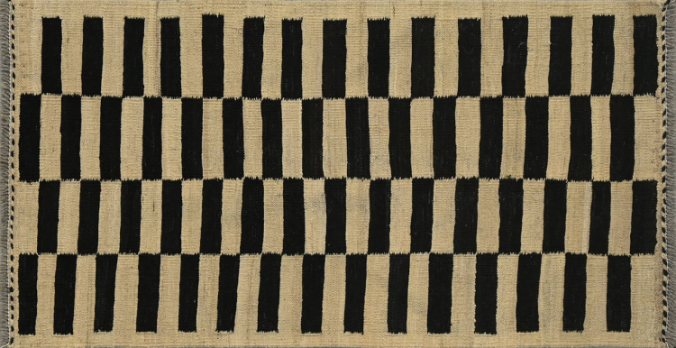 This rug was made as a flat weave by hand on a loom. Flatweave is the term used to describe rugs that have no pile. As the name promises, these rugs are woven and not knotted. This results in a flat rug with a structured surface. Flatweaves are not as soft and usually thinner than knotted rugs. At the same time they are much less complex to manufacture and can usually be laid out from both sides (front and back). Their patterns are usually geometric, which is determined by the fabric.