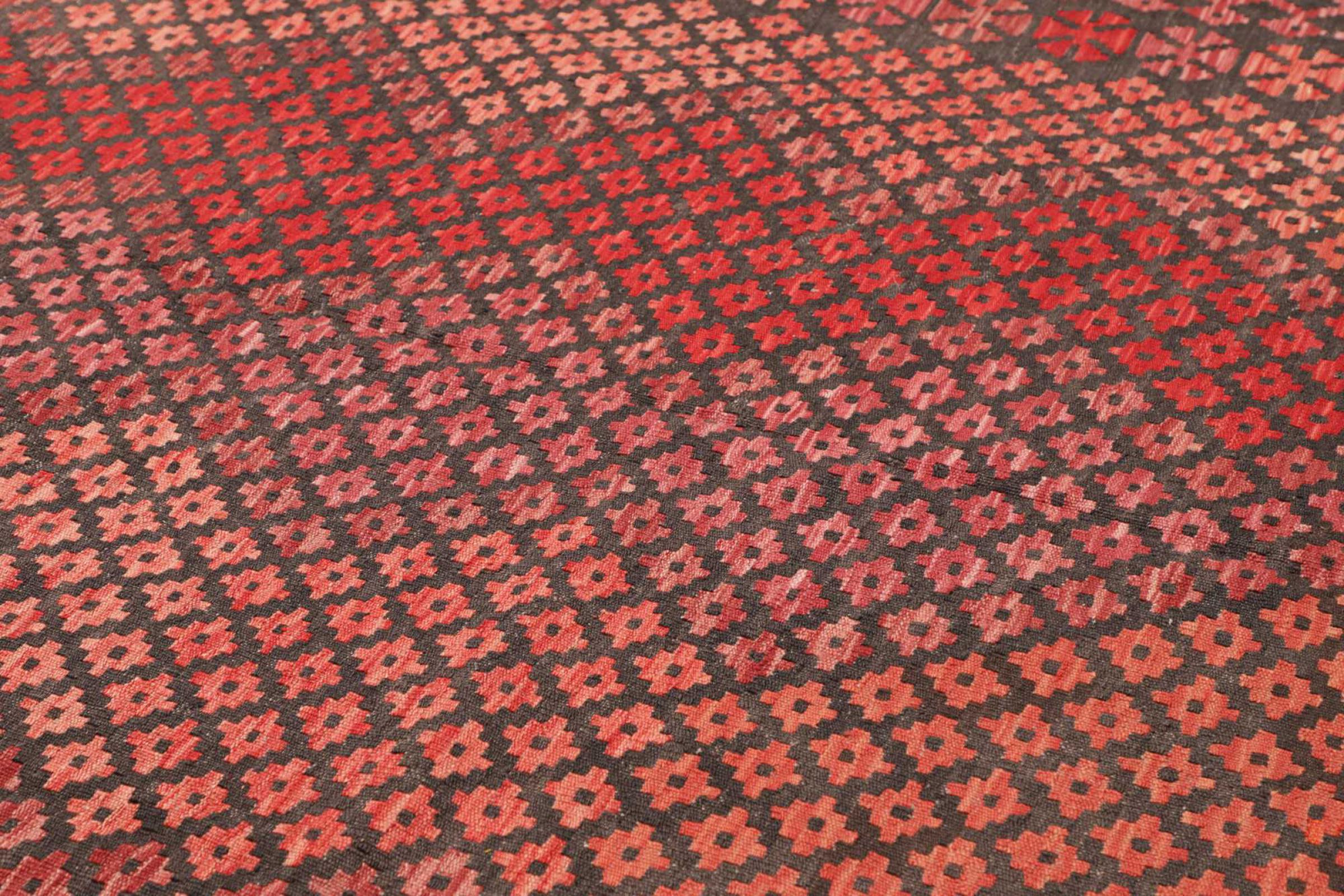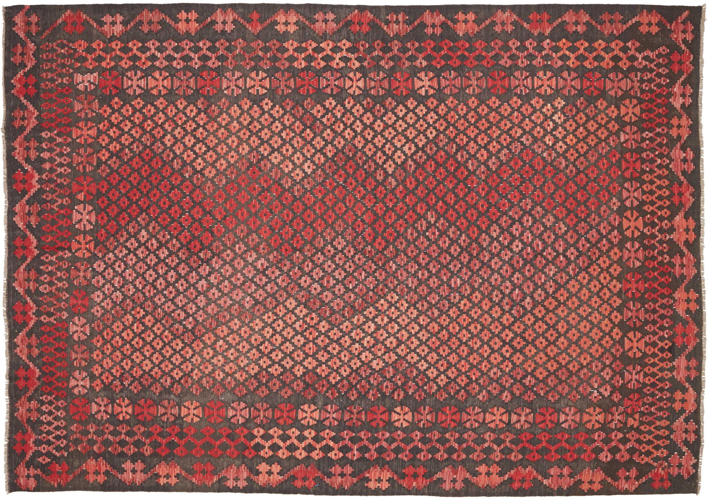 These Kilim rugs have a significant difference from hand-knotted rugs—they are handwoven. As a result, they do not have a high pile of wool and are often flatter and rougher than knotted wool rugs. Their construction is less intricate, making them generally much more affordable. Additionally, Kilim rugs are much lighter and can be laid out on either side. Handwoven Kilims originally come from what was once Persia and are now also widely produced in Afghanistan. They typically feature simple, straight-line patterns, which are characteristic of their weaving technique.