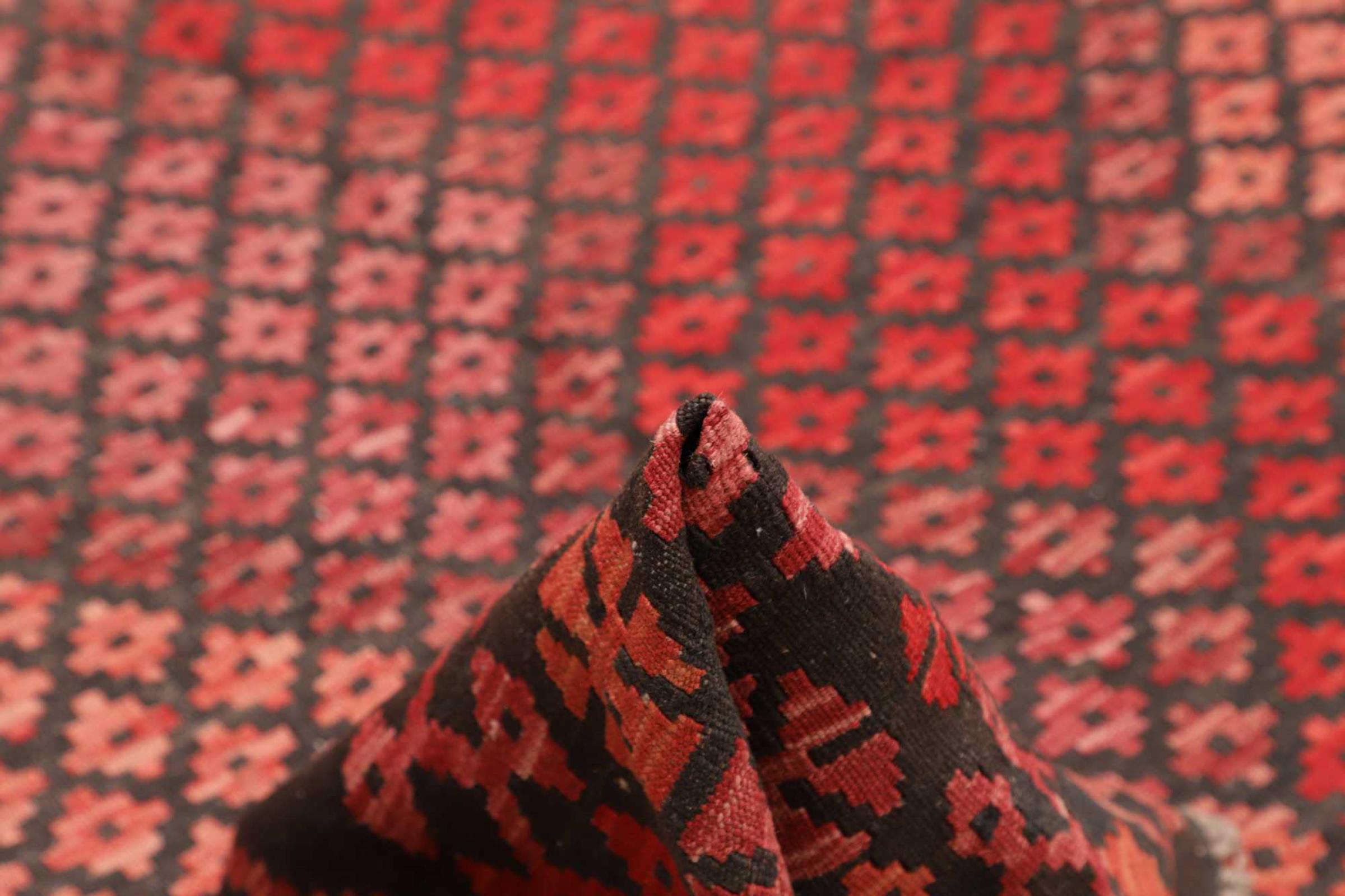 This rug was made as a flat weave by hand on a loom. Flatweave is the term used to describe rugs that have no pile. As the name promises, these rugs are woven and not knotted. This results in a flat rug with a structured surface. Flatweaves are not as soft and usually thinner than knotted rugs. At the same time they are much less complex to manufacture and can usually be laid out from both sides (front and back). Their patterns are usually geometric, which is determined by the fabric.