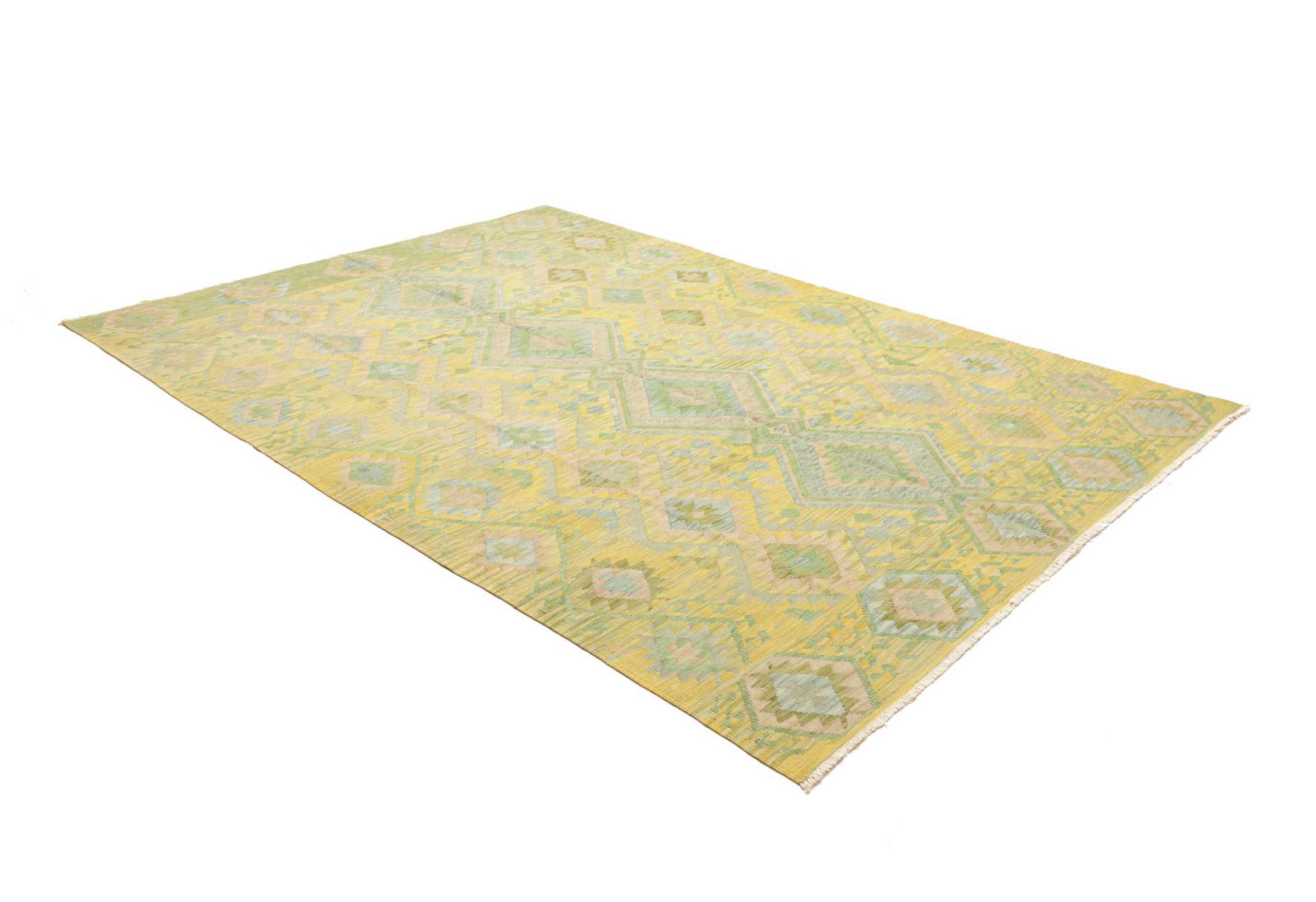 These Kilim rugs have a significant difference from hand-knotted rugs—they are handwoven. As a result, they do not have a high pile of wool and are often flatter and rougher than knotted wool rugs. Their construction is less intricate, making them generally much more affordable. Additionally, Kilim rugs are much lighter and can be laid out on either side. Handwoven Kilims originally come from what was once Persia and are now also widely produced in Afghanistan. They typically feature simple, straight-line patterns, which are characteristic of their weaving technique.