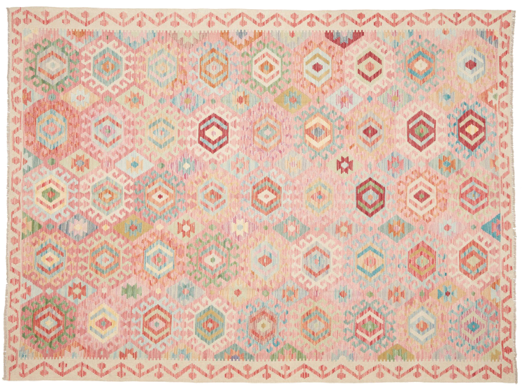 Rug ID: 306756003634215 Size: 9'5"x7'1" ft Thickness: ap. 0.12 in Knot density: 82 - 103 / square inch Manufacturing: Woven by hand Pile: Handspun wool Warp: Cotton Origin: Afghanistan Age: New Weight: ap. 20 lb In stock: Unique - Only 1 in stock